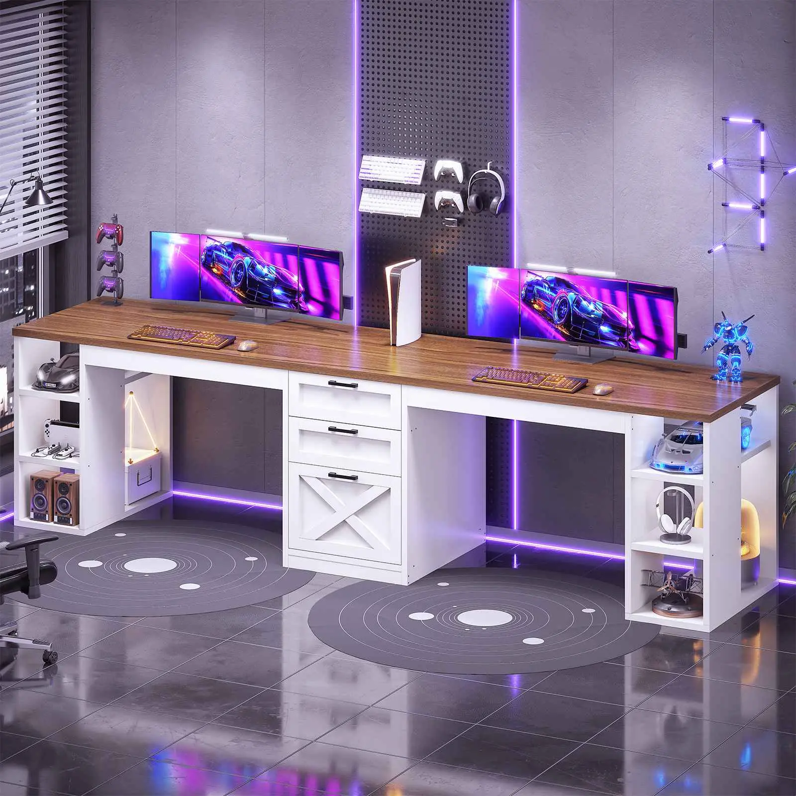 I searched all over for a double desk for gaming and this one was the winner. Comes in several colors, has drawers and shelves, easy to build and looks so good! #wfhdesk ##desk##workfromhomedesk##gamingdesk##couplesgaming