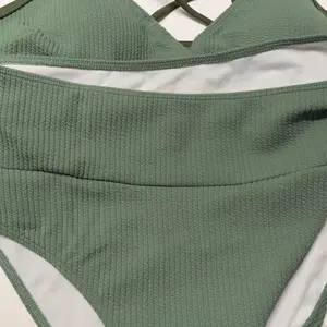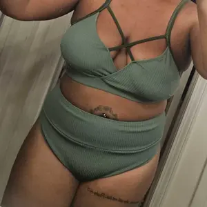 Love the color and the bottom is high waisted, perfect fit. Got so many compliments on this suit. Not very stretchy.