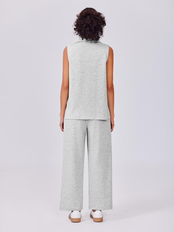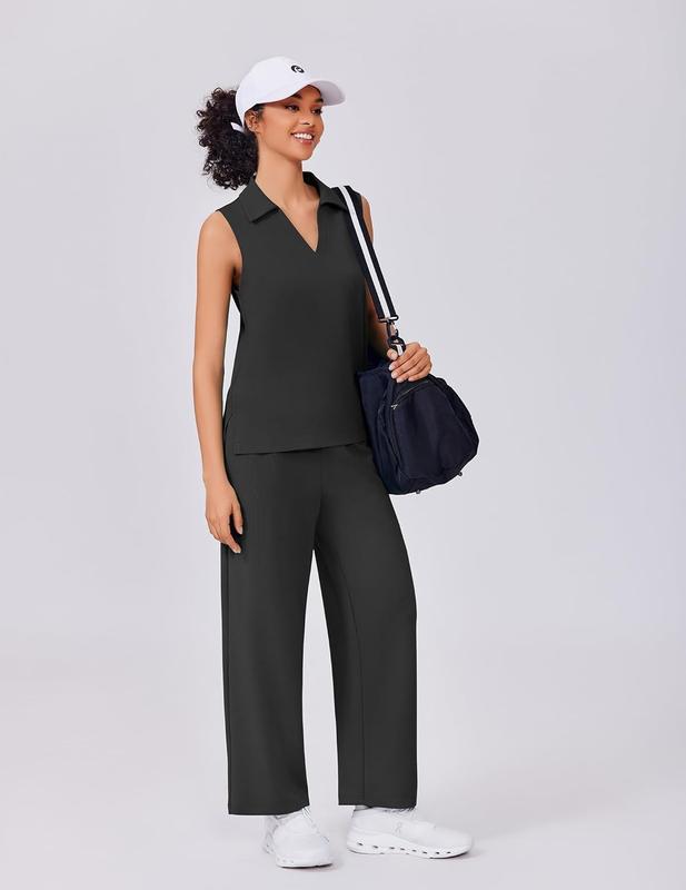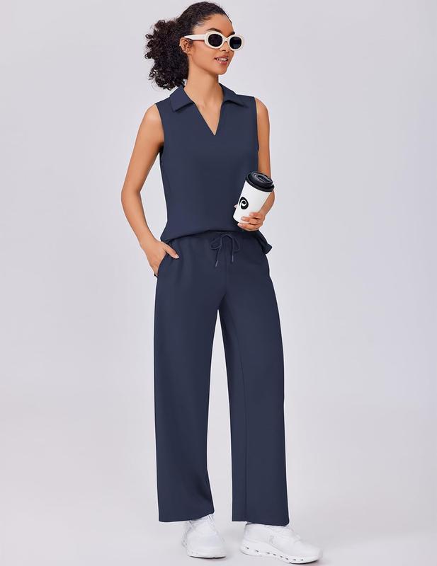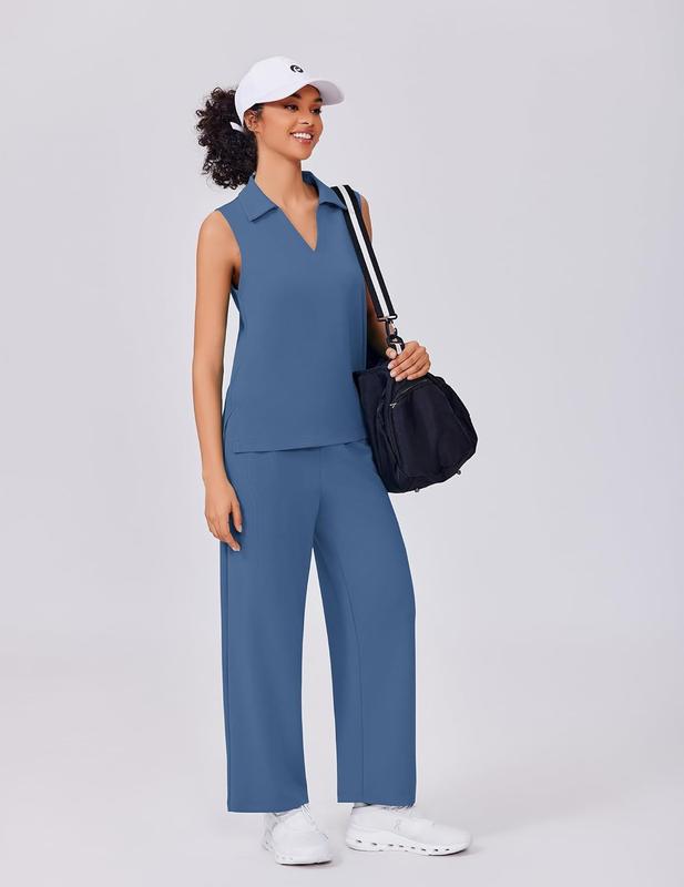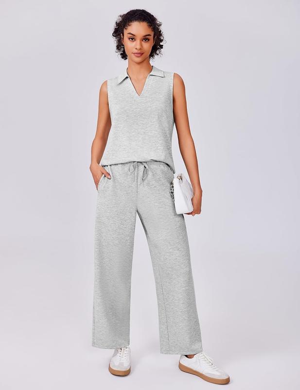 ·Classy Design: This active two-piece set includes a sleeveless top and wide-leg pants. It features a fashionable v-neck design, nine-point pants, elastic drawstring design, and large-capacity pockets to perfectly blend sports and casual styles, providing you with a unique fashion appearance from formal to casual.
