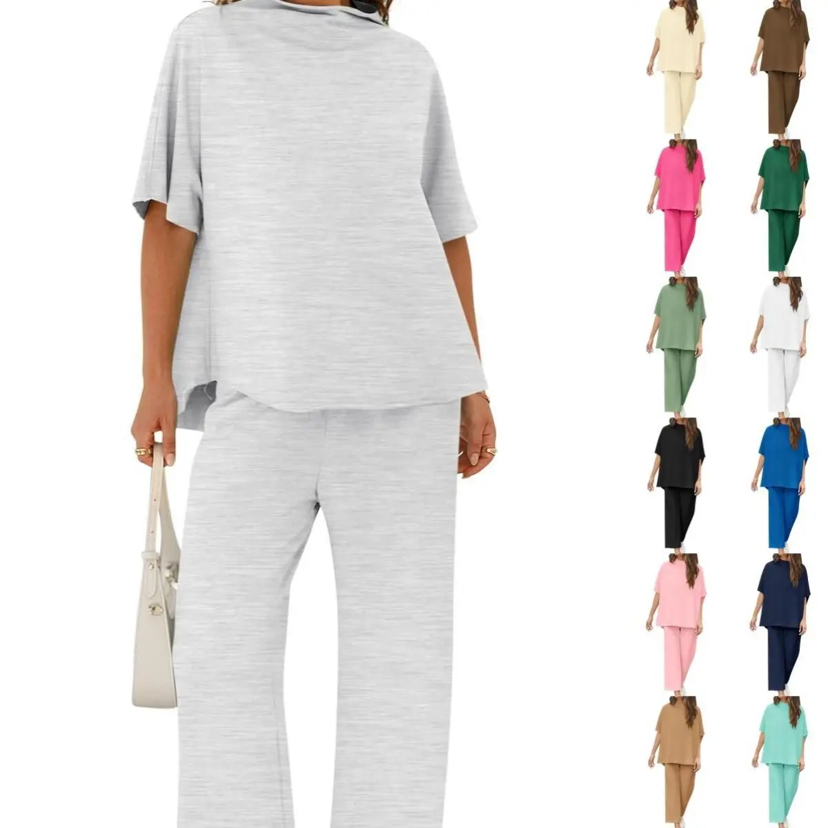 Lounge Sets for Women 2 Piece Summer Outfits Crew Neck Shirt Wide Leg Pants