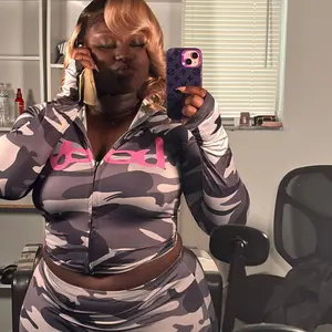 This sweatsuit mimics the original brand to the tea , it’s just thinner but it’s stretchy & the print is very nice