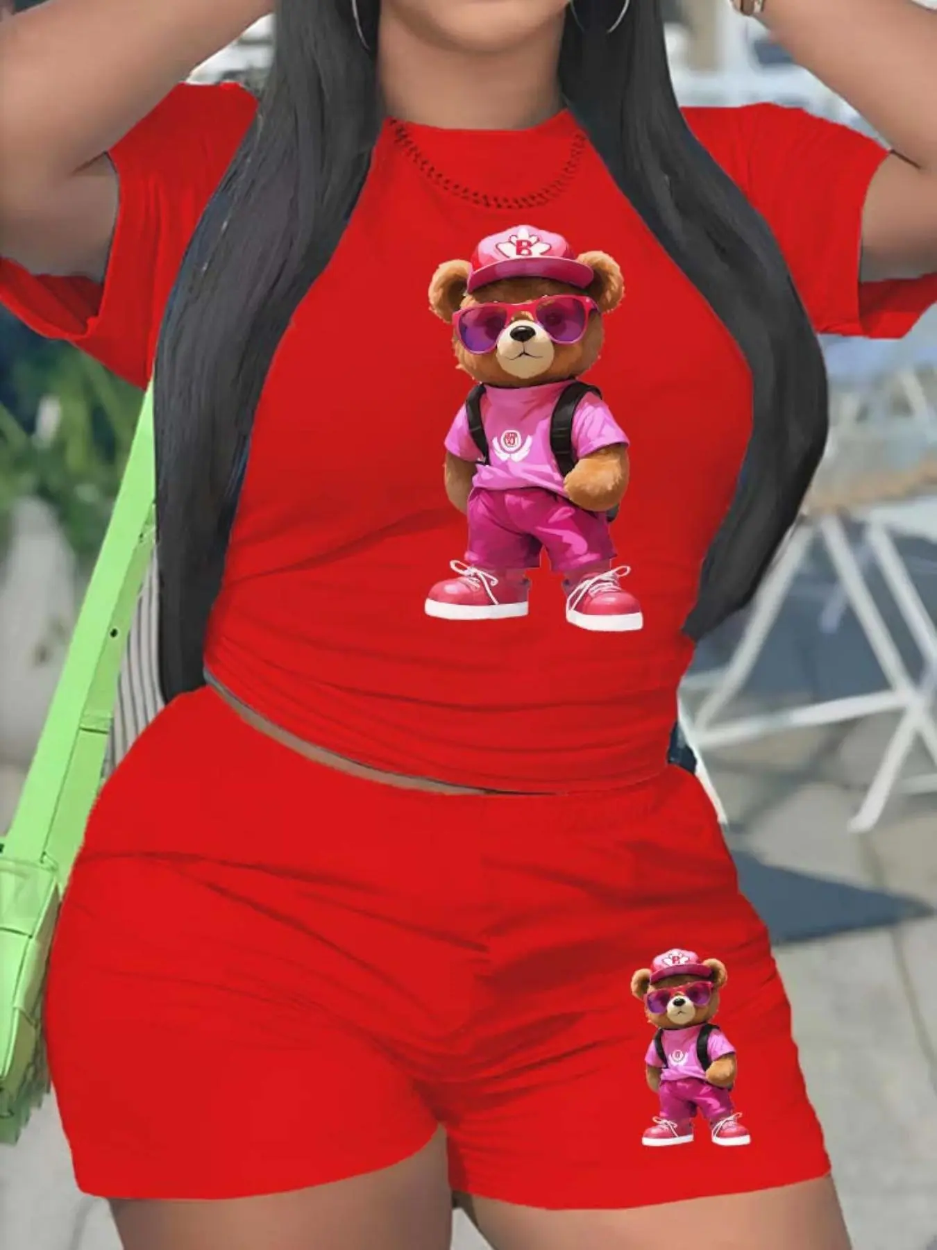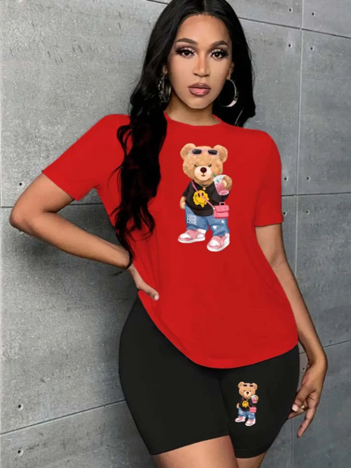 【Perfect for Any Casual Occasion】: With its casual style and fun cartoon bear print, this T-shirt and shorts set is ideal for daily wear, whether you're out for a casual stroll or lounging at home.