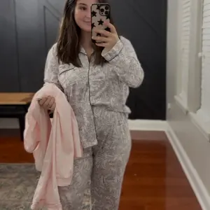 I recently purchased this set of pjs and I love everything about it, the color, print and how light they are. Highly recommended