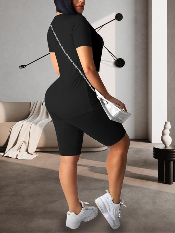 Size up for a loose fit. usually wear a small orders a medium & fit exactly like I wanted. I wish it had pockets & that the shorts would have more a snatching fit, but they are still a great find super comfy & convenient. The material is stretchy & soft. Love it & definitely recommended. Good price