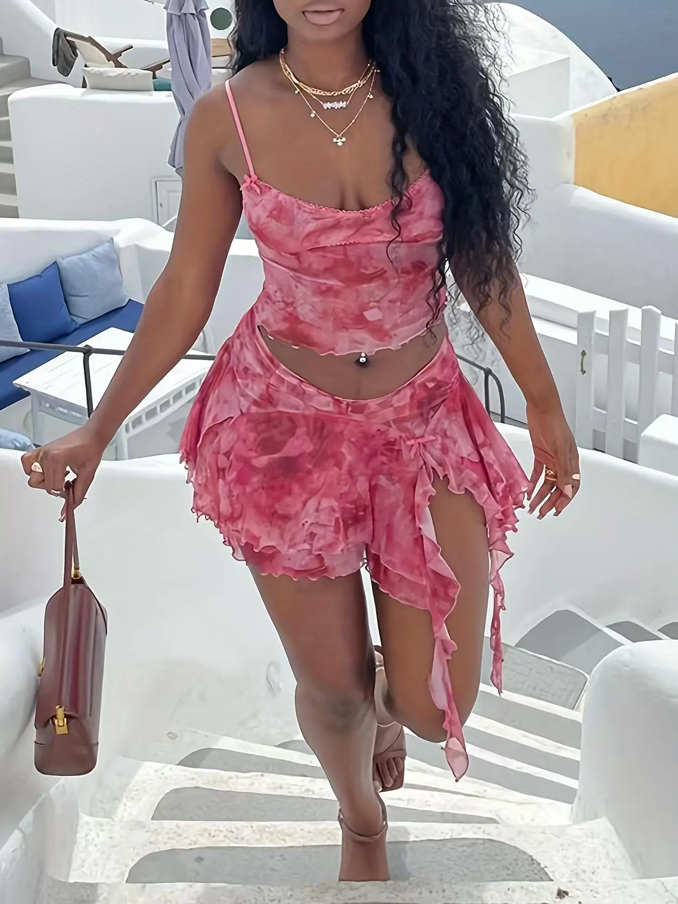 It looks so cute in pictures but in person very thin and see through. I’m 12/14 and the top did not fit at all because of my chest and bottoms are too small didn’t fit true to size
