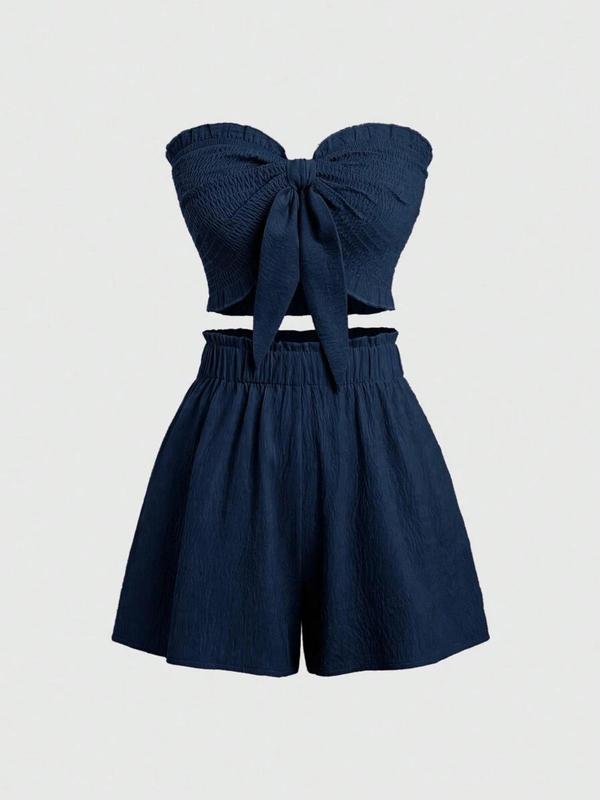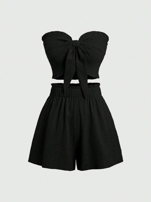 Kind of disappointed in this outfit. The bow did come already tied/attached to the top. The top is oversized and itchy. I would probably wear the shorts with a different shirt.