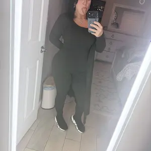 I love this outfit, it’s comfortable, fits true to size has a lot of stretch,& the color is vibrant. I would definitely recommend. Size down because the stretch is amazing.