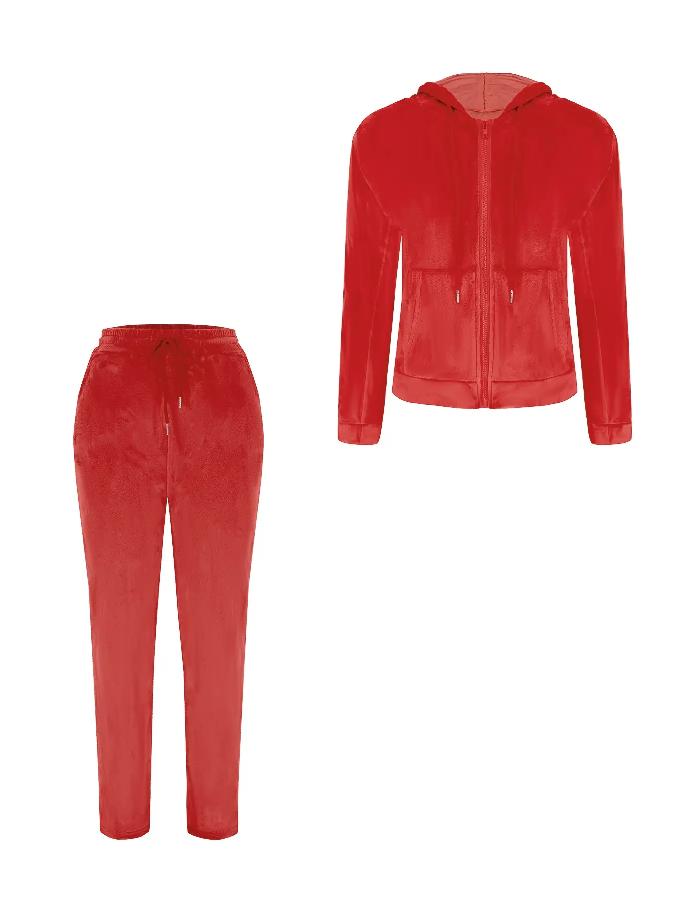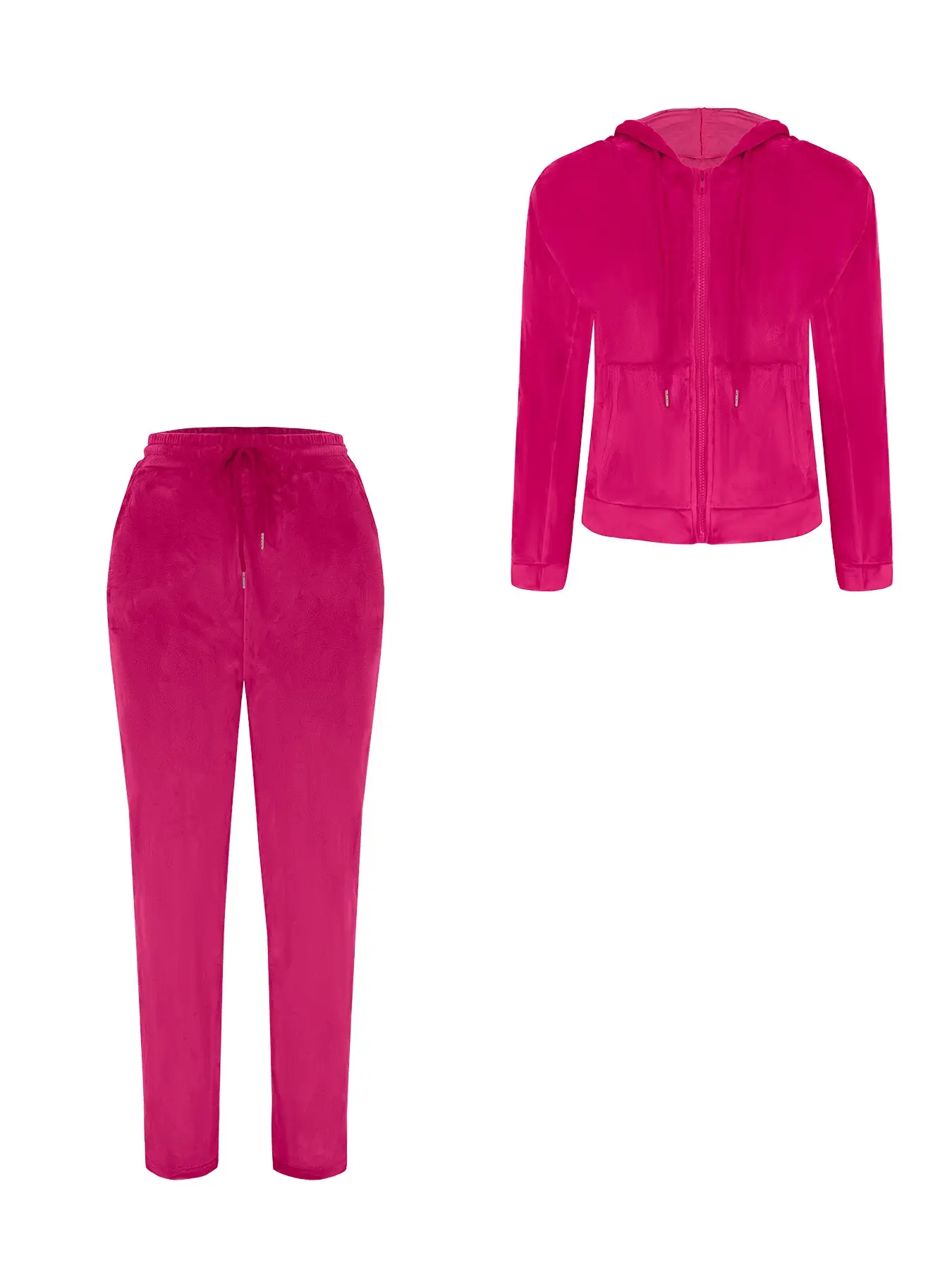 Feel cute and cozy in this velour two piece set! The zip hoodie and matching pants are buttery soft with stretch, real pockets, and a drawstring waist so you look put together while feeling like pajamas. Perfect for errands, airport fit, school runs, and weekend lounging. Add to cart and snag your size before this color is gone! #tiktokshopcybermonday #tiktokshopblackfriday #tiktokshopfalldealsforyou #tiktokmademebuyit #womensfashion #tiktokpartner