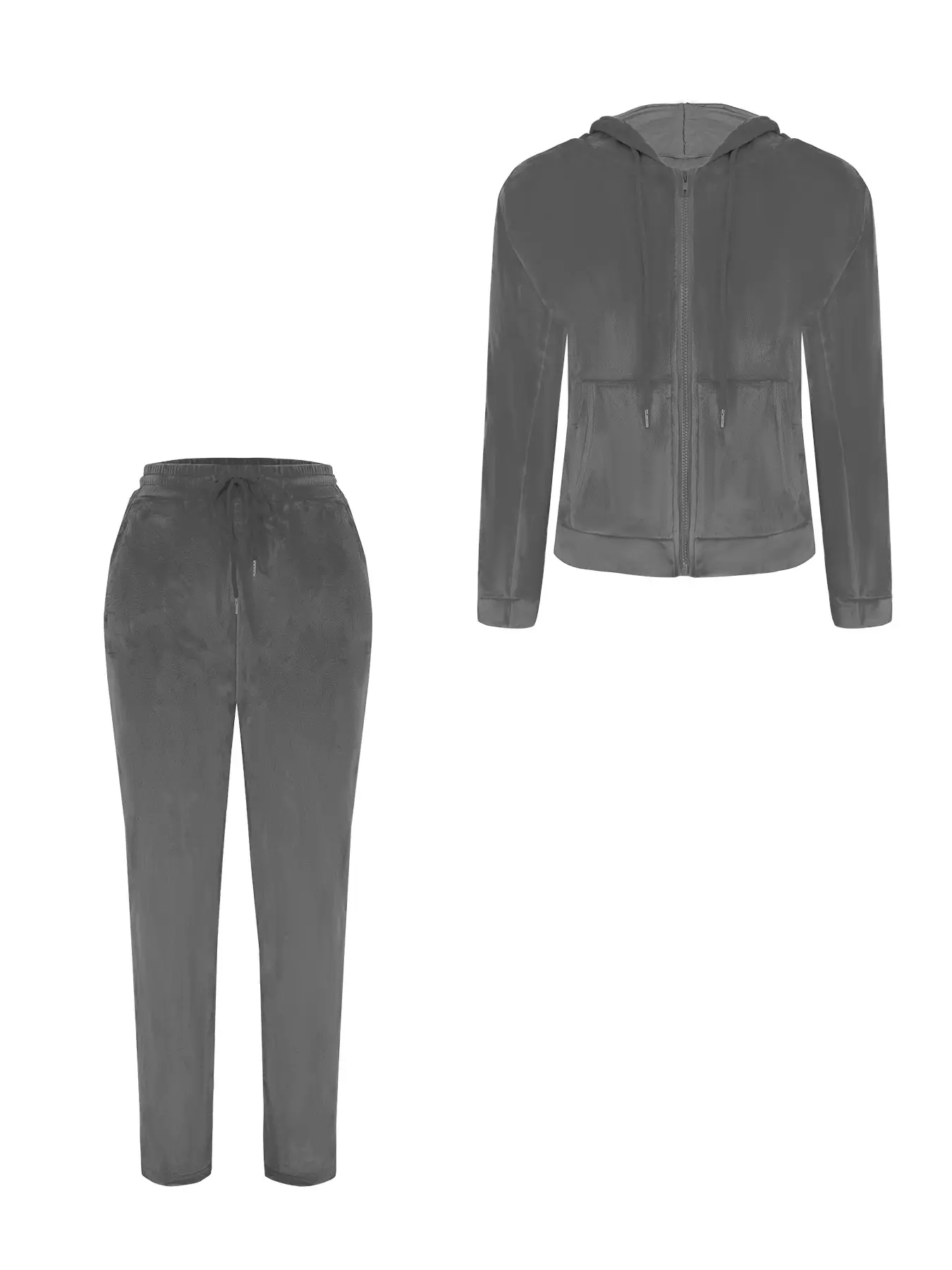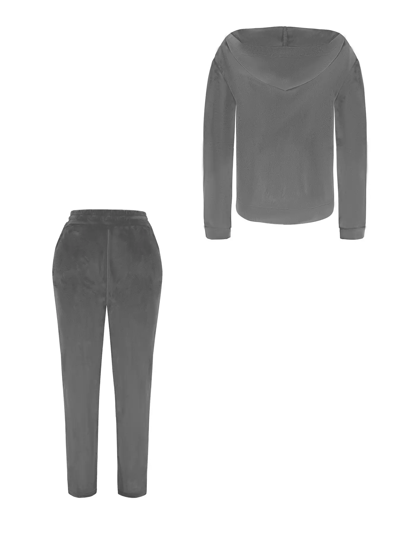 Grey Velvet Waist-Tie Hoodie Co-ord Set? Luxe Edgy Chic Unlocked#CoordinatedSet #VelvetVibe #AthleisureGlam #TrendyWear