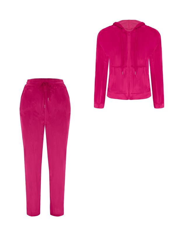 Two-Piece Set Women's Solid Zip Up Hoodie & Drawstring Waist Pants, Casual Long Sleeve Hooded Top & High Waist Trousers for Daily Wear, Ladies Outfits for All Seasons