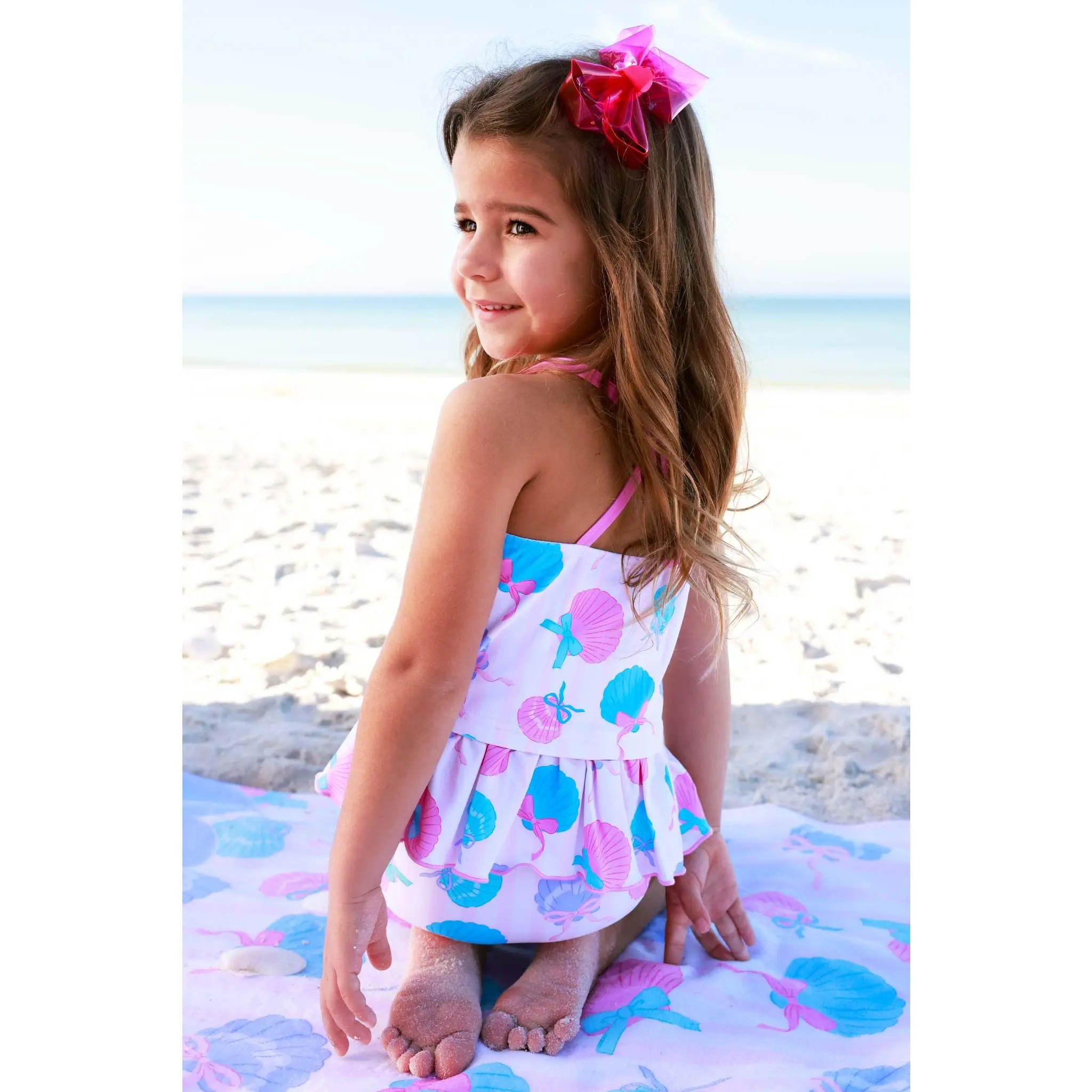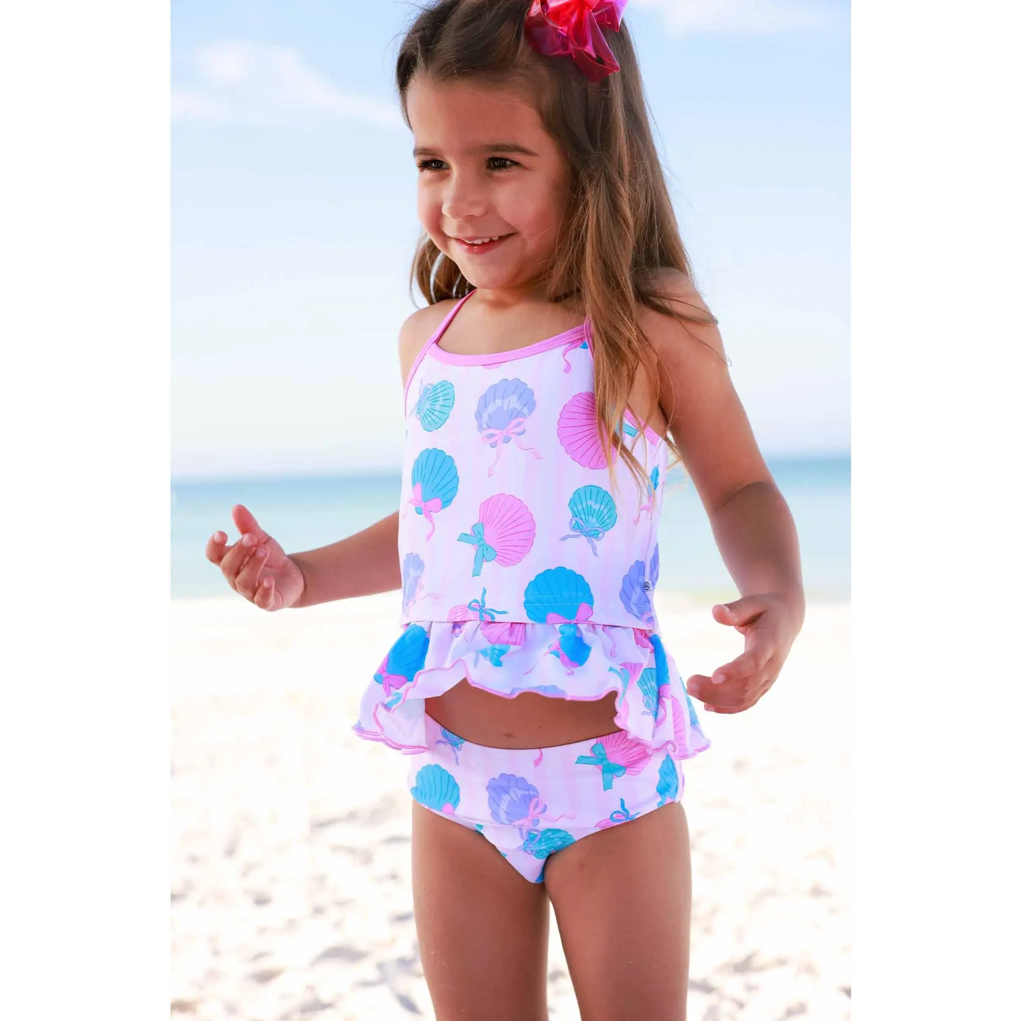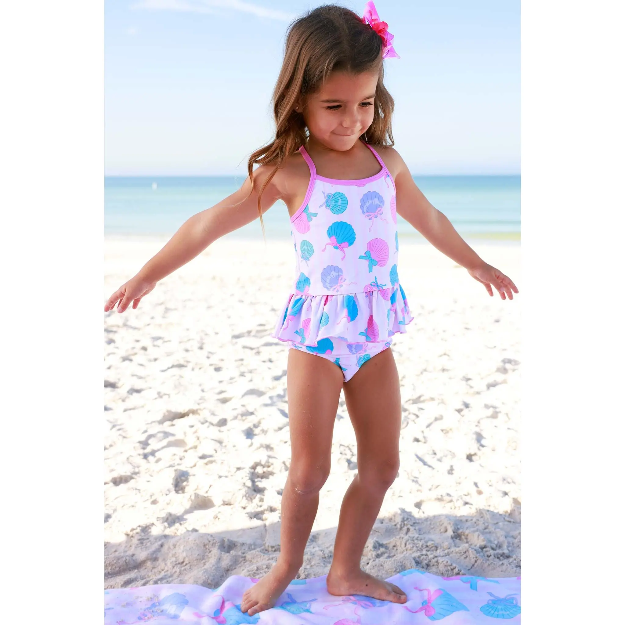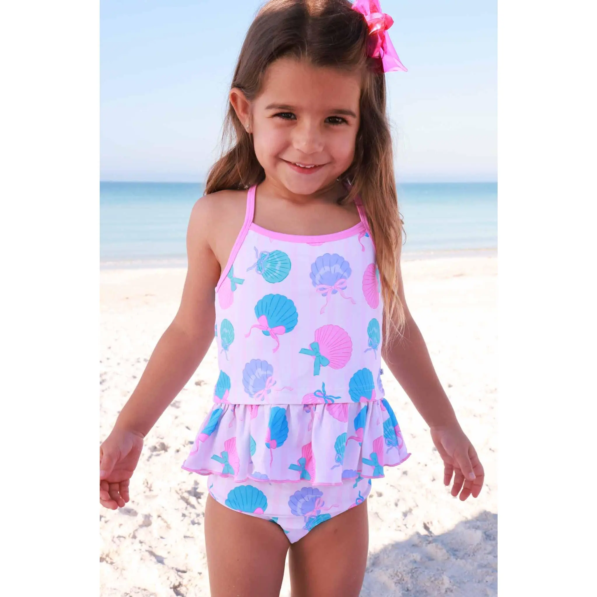 I absolutely loved this bathing suit for my daughter. The pattern is precious and she looked adorable in it with the little ruffle. The size fit her perfectly. The only complaint I have is that I wish all of the bathing suit tops were made with adjustable straps. We occasionally ran in to the front being too low so I would have to pull it down from the back. The quality is awesome. It’s hard to get the sand out of the suit but it’s worth it to see her light up when she plays in it.
