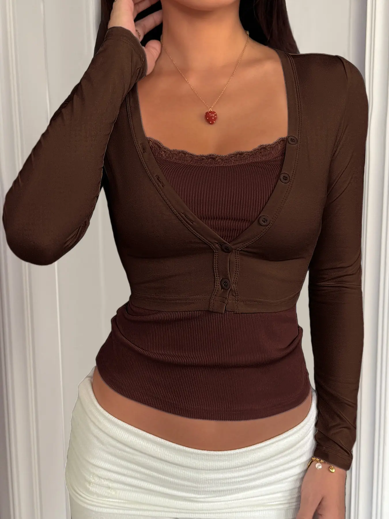 【Lace Detail】: Featuring romantic lace accents on the camisole, adding a delicate and feminine touch to your outfit layers.