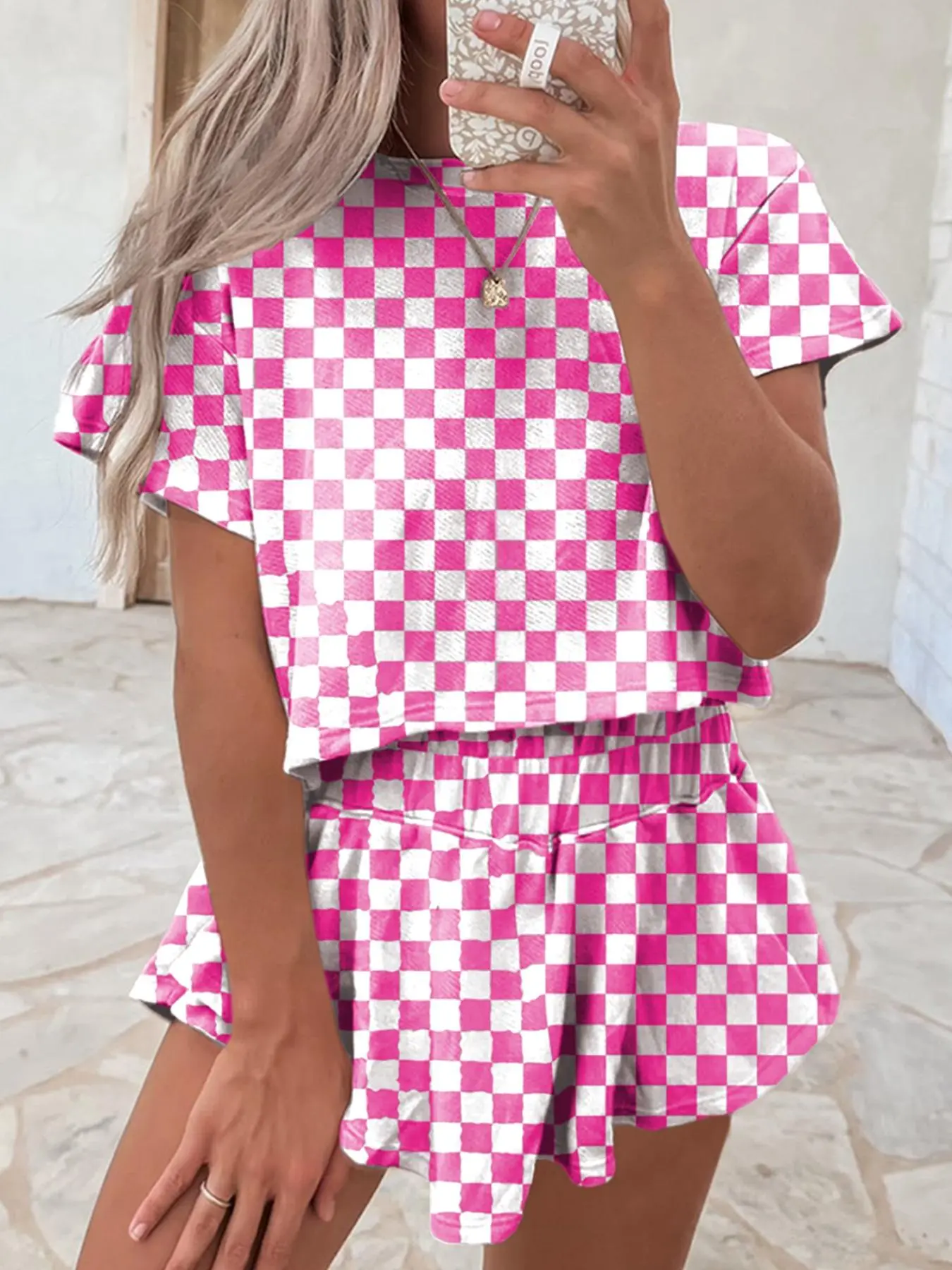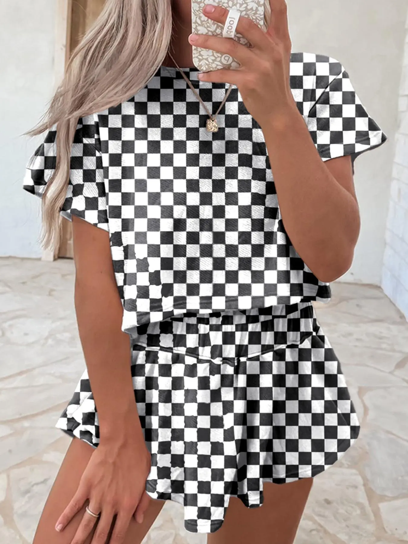 Love this set! The fabric is lightweight and so comfortable. I ordered a medium but honestly could’ve sized down. The checkered print is adorable, and it’s easy to dress up or down. Definitely recommend — 5 stars!