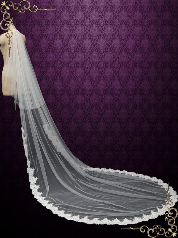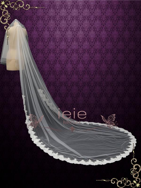 Beautiful chapel length wedding veil with lace starting from midway.