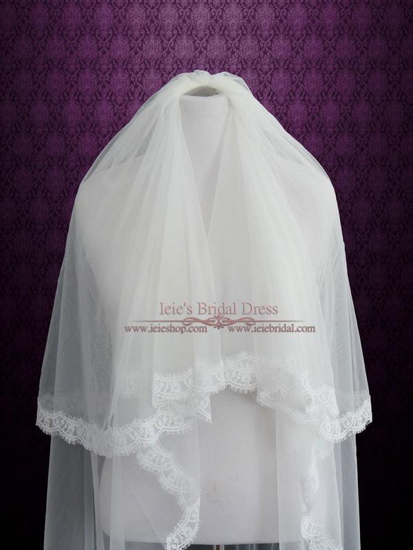 Two Tier Cathedral Length Eye Lash Lace Edge Veil VG1028