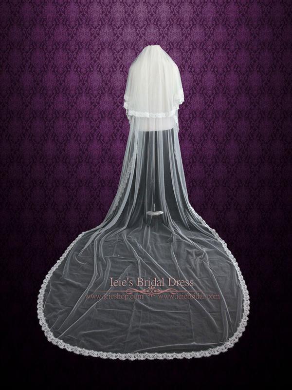 Beautiful cathedral length wedding veil in two tiers. Made with soft french tulle and eyelash lace edge.