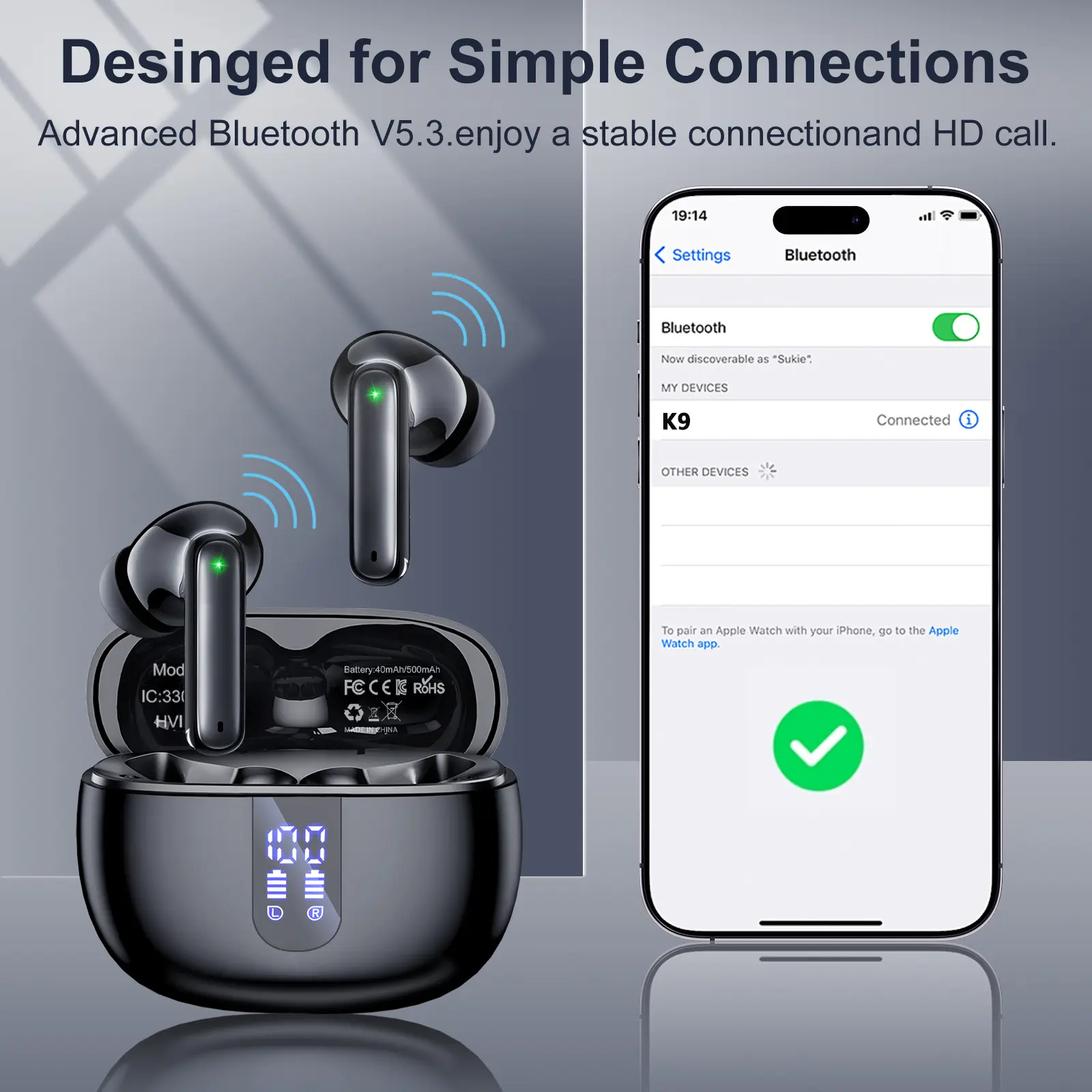 ·Bluetooth 5.3 & 12 m Range: Fast pairing, stable connection