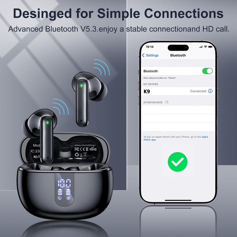 ONE LIFE Wireless Bluetooth 5.3 Earbuds with LED Display