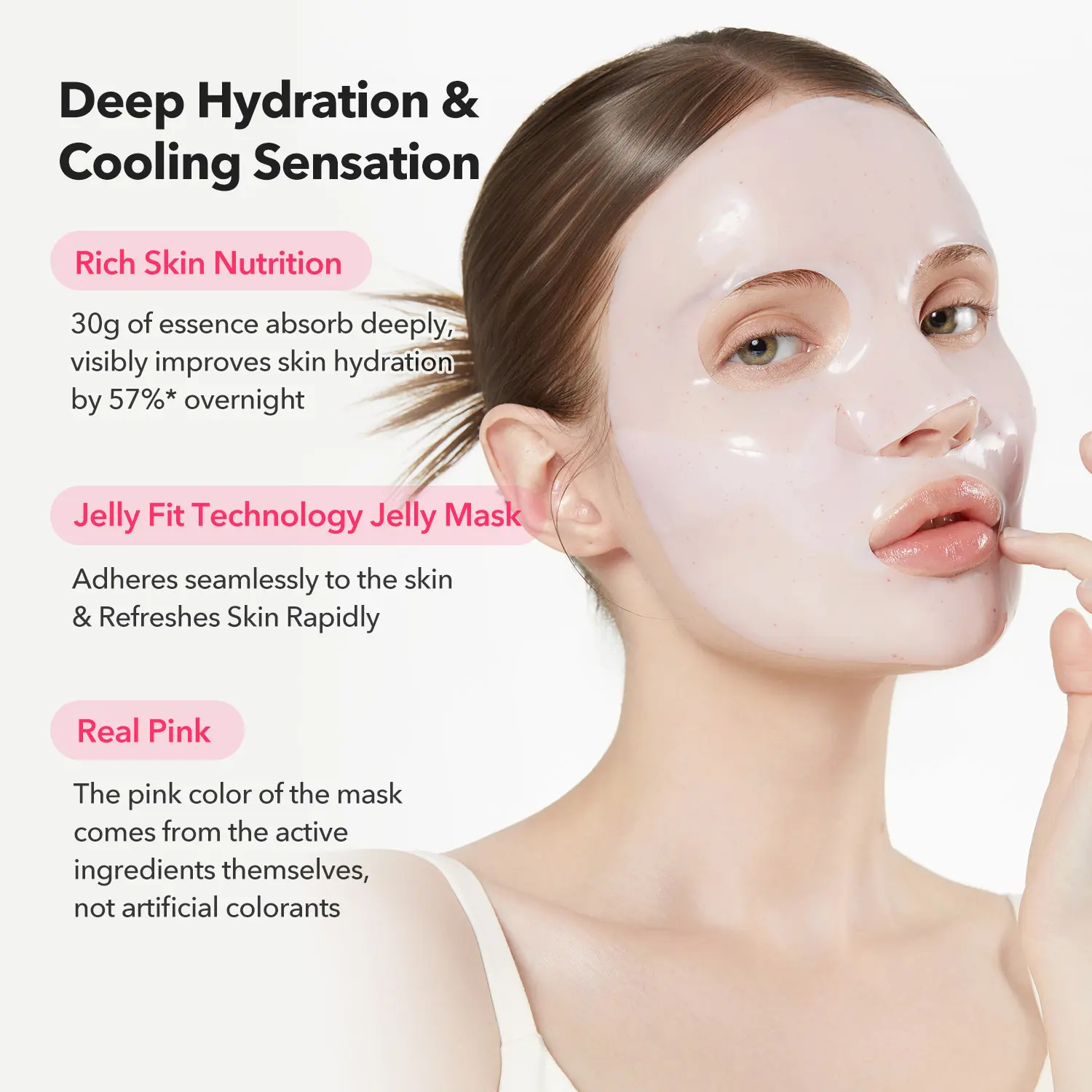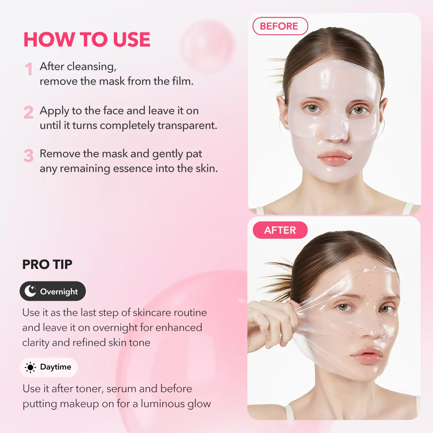 This unique pink-to-transparent hydrogel mask transforms as it absorbs into the skin.