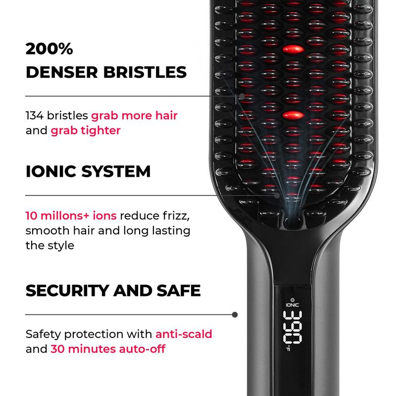 With 2x denser bristles which grab hair tighter, TYMO hair straightener brush is more effective on thin hair, and creates straighter result on thick curly hair. Reaching more hair with every pass, the straightening brush is a huge time saver in a morning rush.