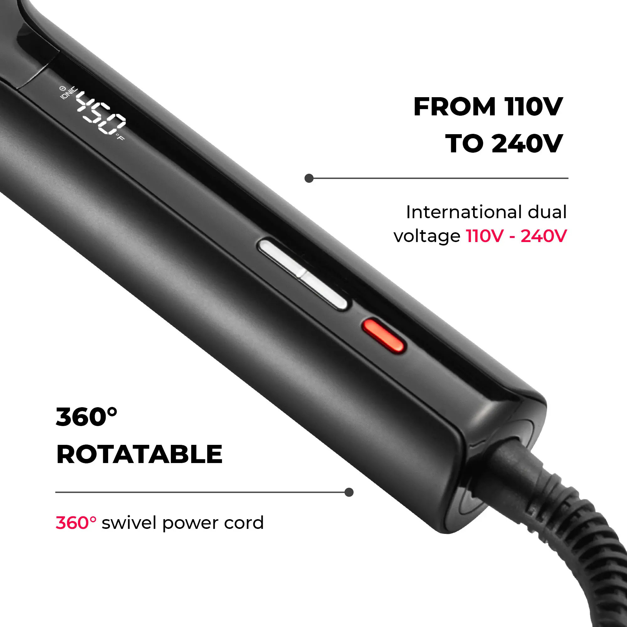 TYMO flat iron straightener has an ergonomic and anti-scald design. Buttons are located at the end of the handle to avoid accidental touch so you can style at any angle. Contoured handle allows secure and comfortable grip. The tip of bristles and side bristles are cool to prevent scalp and hand burns.