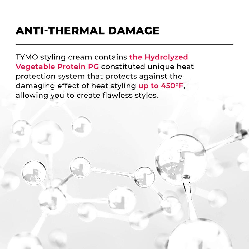 TYMO styling cream contains the Hydrolyzed Vegetable Protein PG that protects against heat damaging up to 450°F, leaves soft, sleek and healthy results.