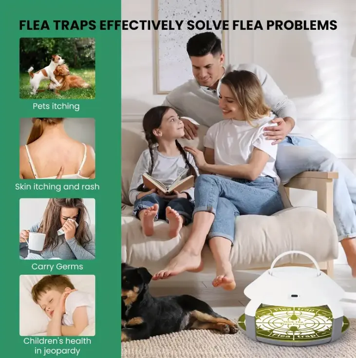 Flea Trap Set - 2-Pcs Non-Toxic Indoor Pest Control for Pets & Children - Green Square Design - Attracts Bugs & Cockroaches - Safe & Effective for Living Room, Bedroom, Kitchen, Storage