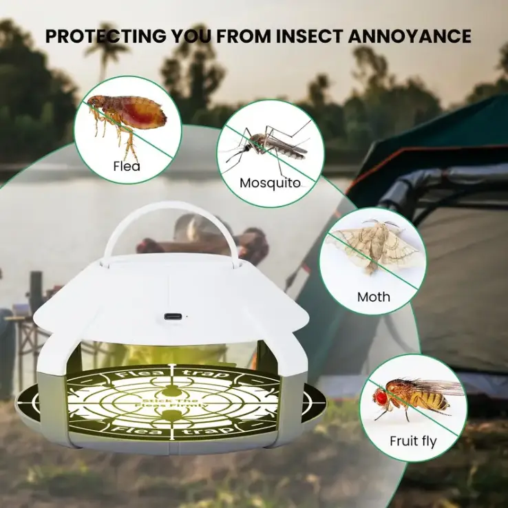 2-Pcs type-C charging bug trap, fly catcher, pet LED camping bug light trap, suitable for indoor and outdoor use effective indoor ant control nontoxic pest control