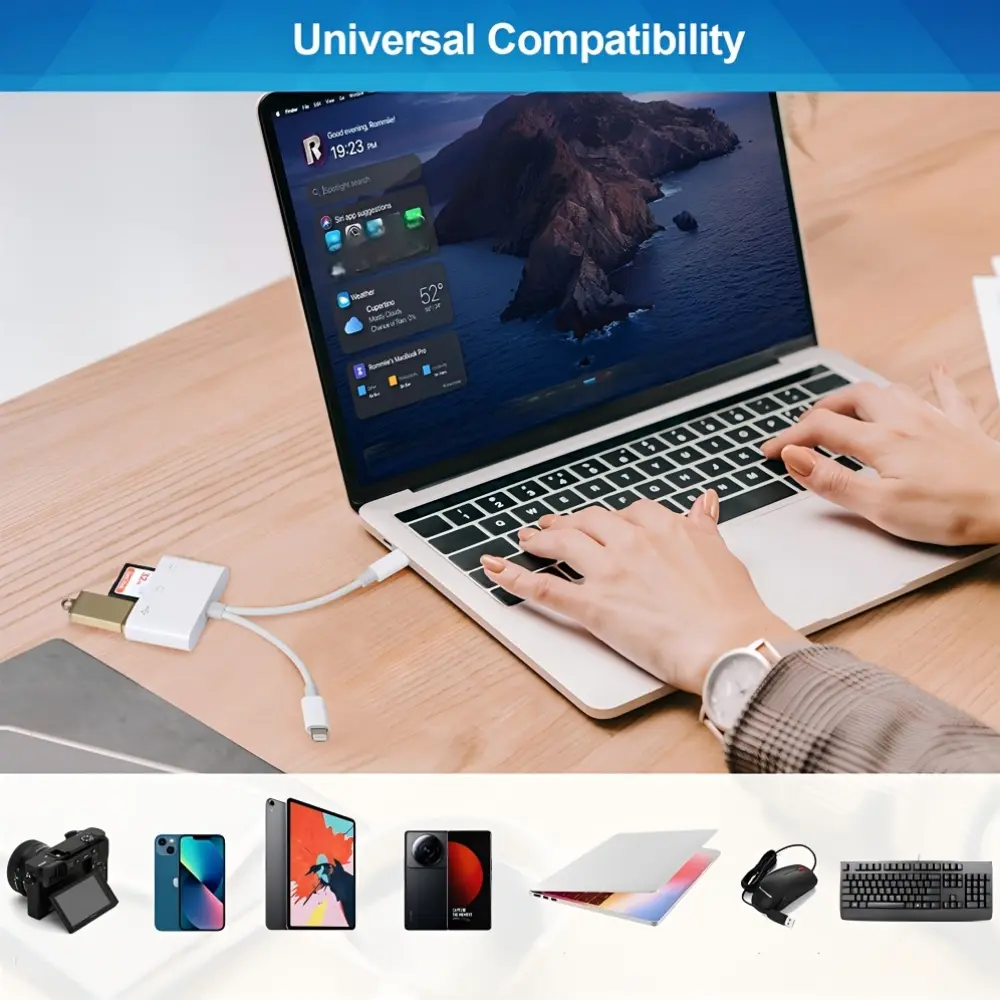 ·[Dual slot design]: Lightning to USB Adapter compatible with SD, SDHC, SDHC, SDXC, Micro SD, Micro SD, Micro SD, Micro SDHC, Micro SDXC cards