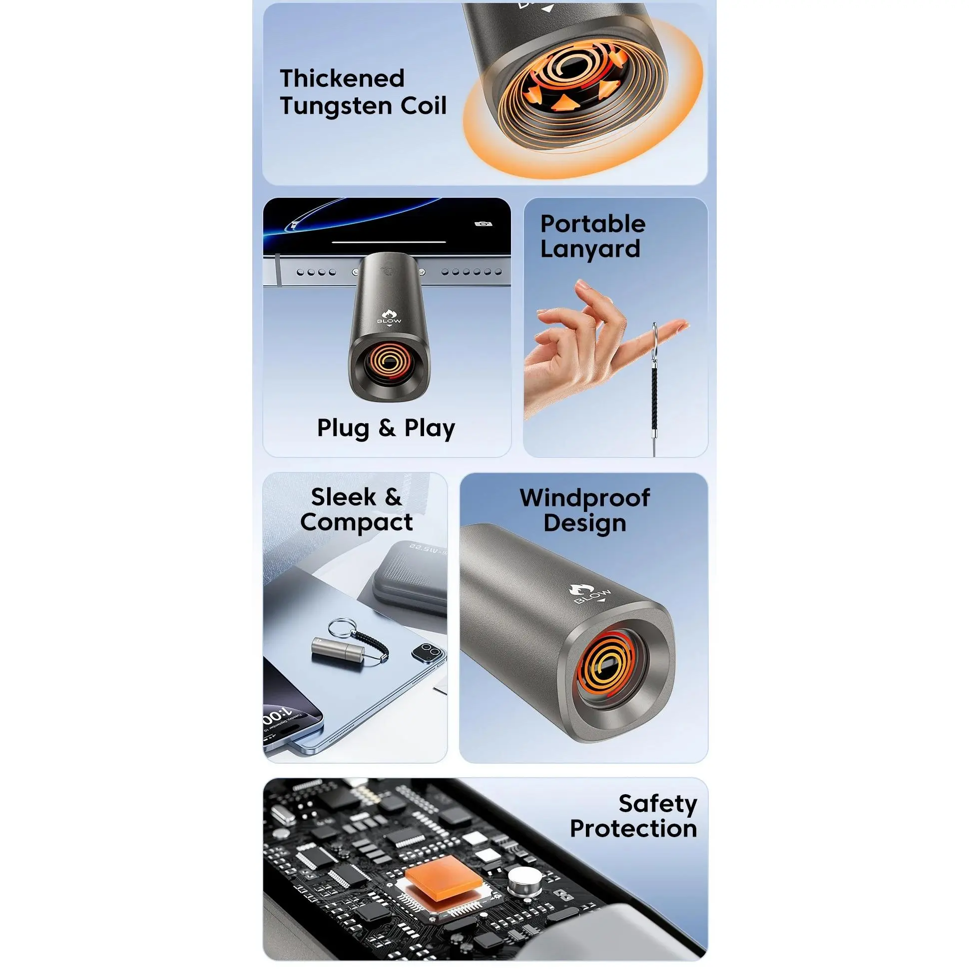 No Flame, No Risk: Tungsten wire heating ensures windbreaks,flameless operation – perfect for outdoor adventures!
