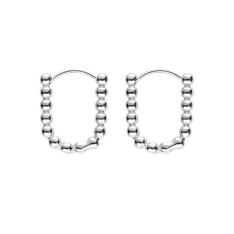 Stately Steel Stainless Steel U-Shape Beaded Hoop Earrings