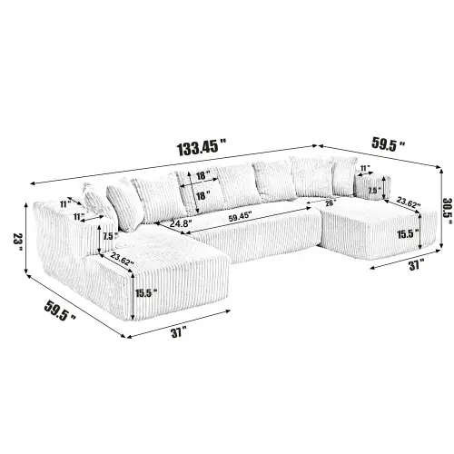 【Elegant Corduroy Sofa】Elevate your home with our modern modular U-shape corduroy rduroy sofa couch. With its sleek design, clean lines, and premium corduroy fabric, it adds a timeless and chic touch to your living room, making it the focal point of attention. Ideal for living rooms, apartments, and bedrooms.