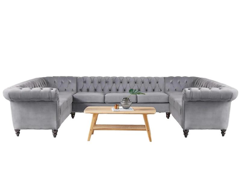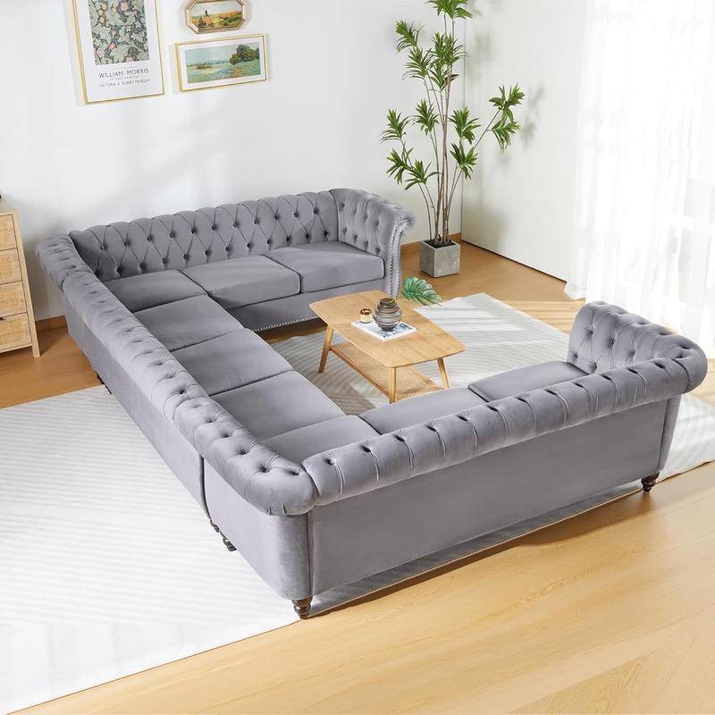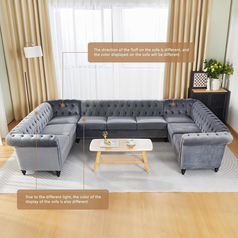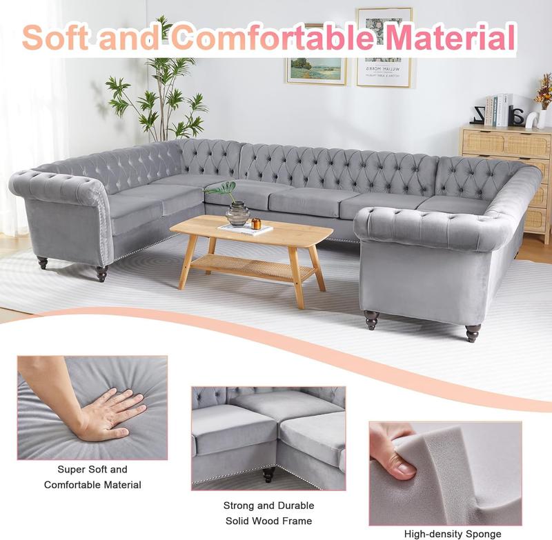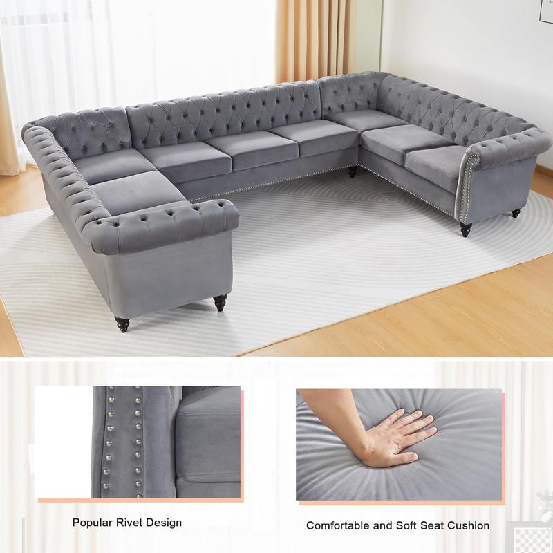 【Modern Design】U-shaped sectional sofa crafted with velvet fabric and wood frame; this sofa is built to last and is sturdy; with a stable side armrest, it can be used as a support system or to prevent children from falling.