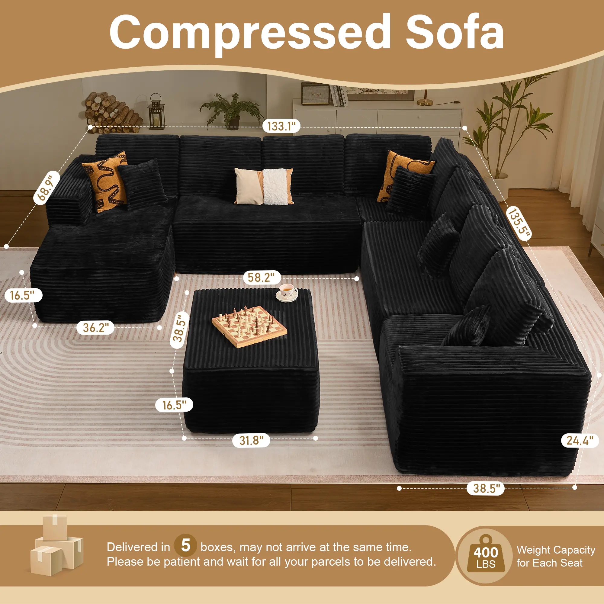 ·Delivered in 4 packages, which may not arrive at the same time.