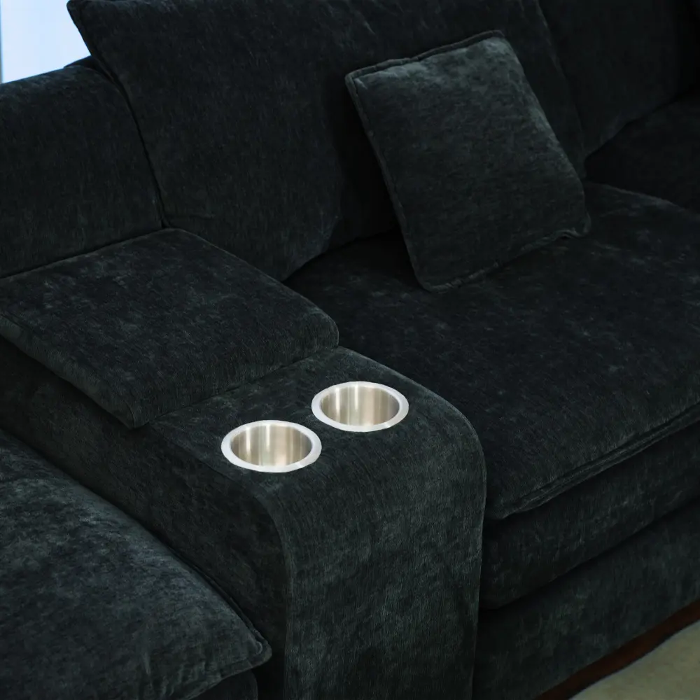 【Practical Functional Details】The middle armrest features integrated cup holders & hidden storage, keeping snacks/remotes handy without clutter. Paired with a sleek, spacious coffee table ideal for drinks/decor/gatherings, the set elevates your space: discreet storage and streamlined design create a sophisticated leisure nook blending comfort and functionality.