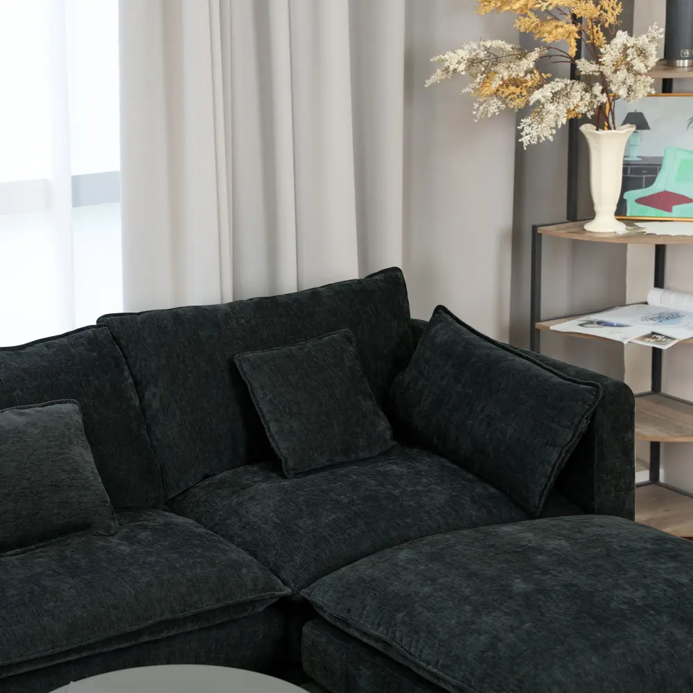 Equipped with cylindrical black feet, they not only give a sleek, modern look but also elevate the sofa. This elevation makes under - sofa cleaning a breeze and enhances air circulation around the base, helping to keep the fabric dry and durable.