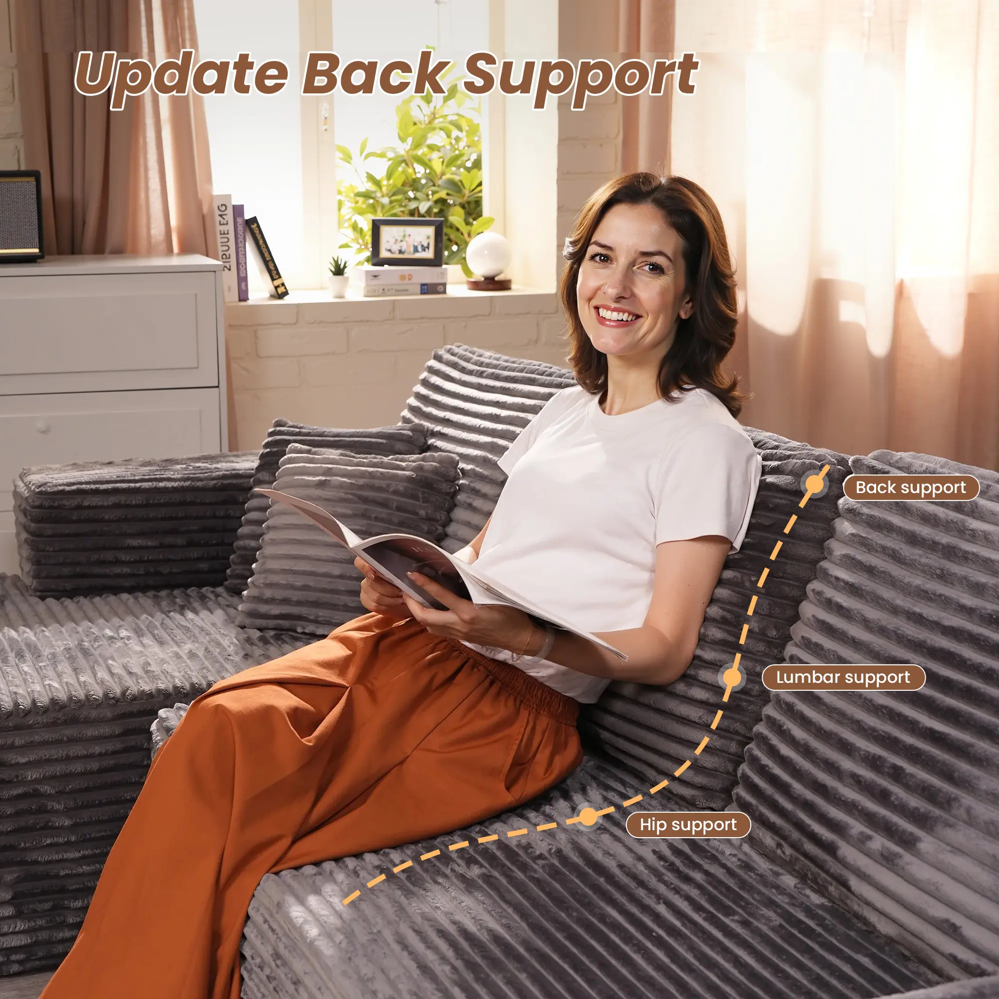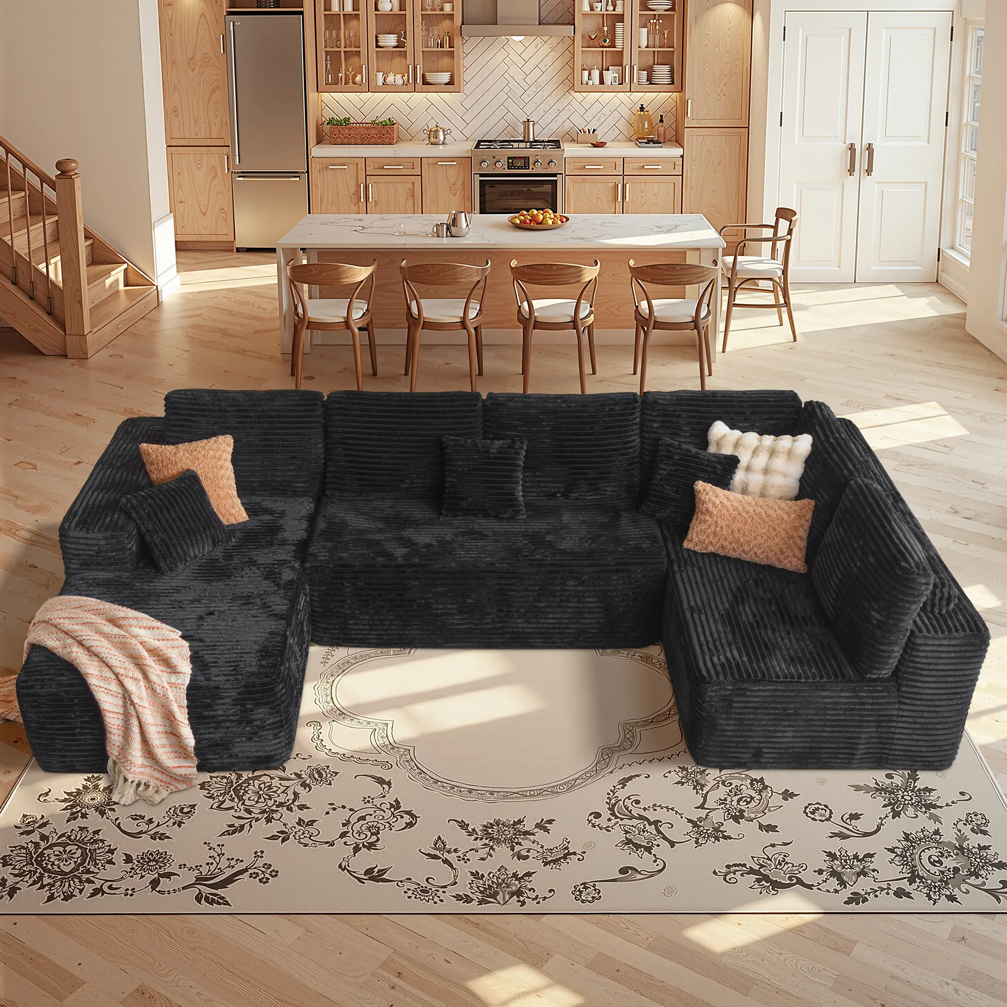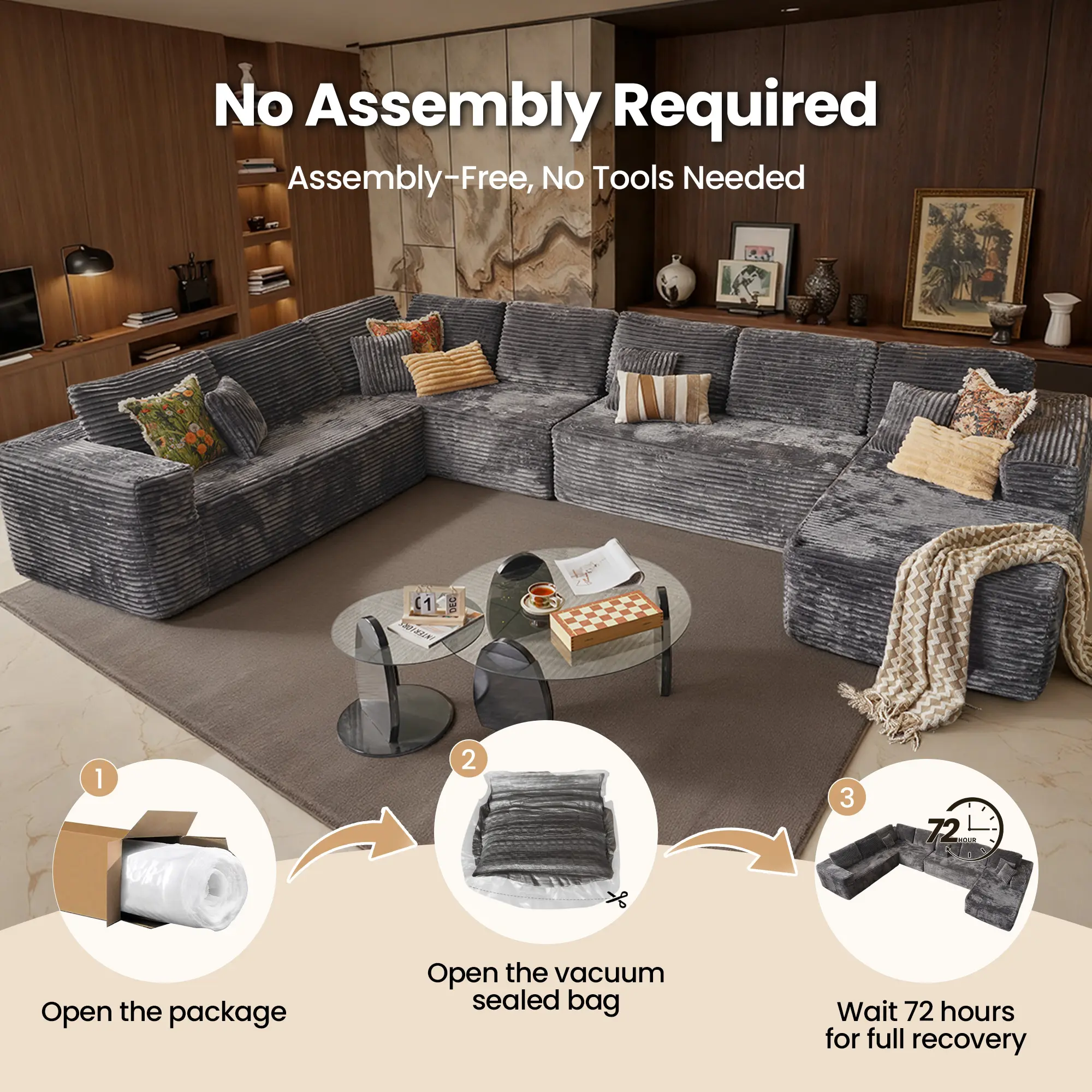 HOOOWOOO U-shaped Modular Compression Sofa can be reassembled into L-shaped, U-shaped, V-shaped, or bed layouts. Endless flexible living options make it perfect for family movie nights or home parties.