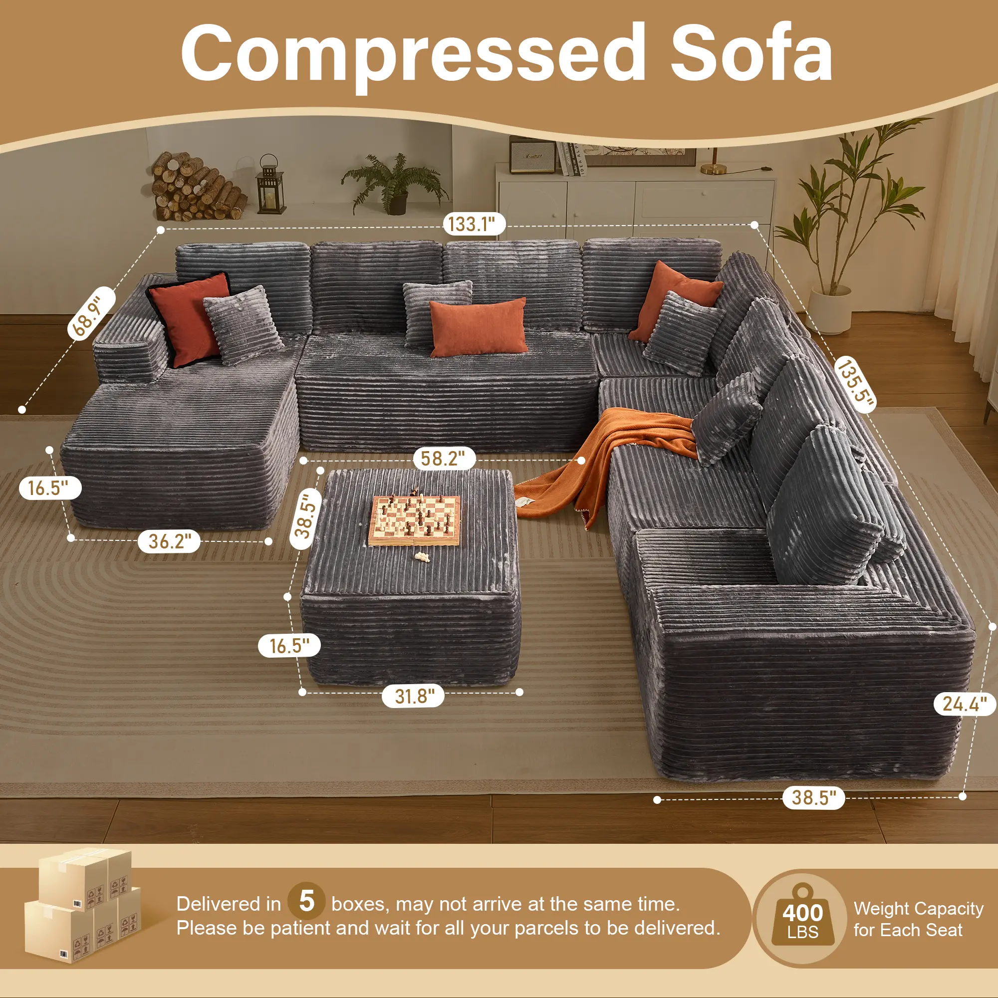 ·Delivered in 5 packages, which may not arrive at the same time.