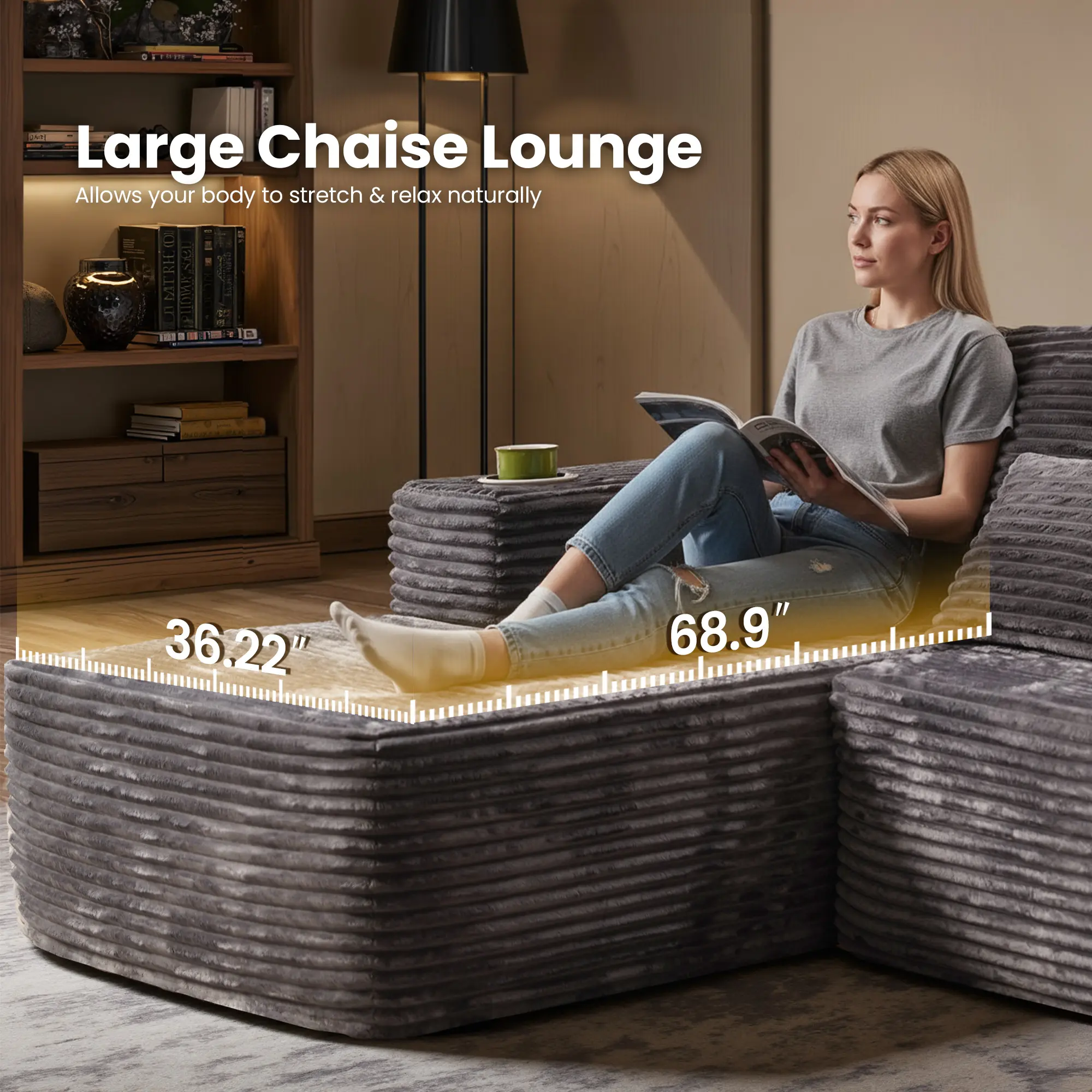 ·Extra spacious seat fits tall and big body shapes, ideal for cross-legged lounging.