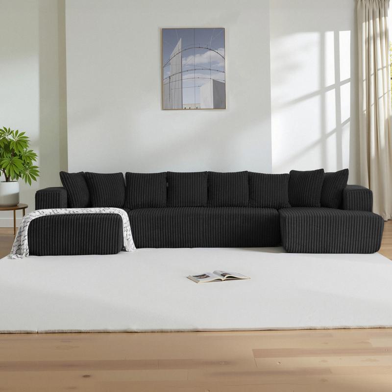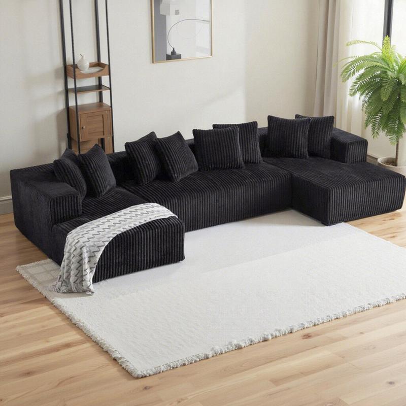 ·U-shaped Modular Sofa: This super comfortable corduroy cloud sofa is perfect for modern living rooms. It features a double recliner design, offering ultimate comfort. 🛋️