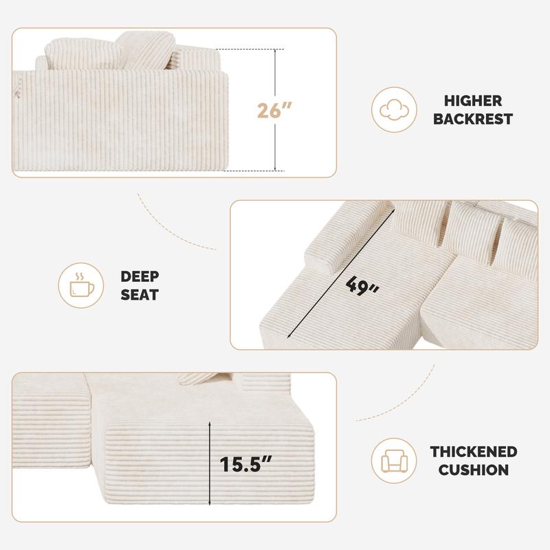 ·131'' Large Couches for Living Room: Our Luxury modular U-shaped corduroy sofa. Featuring a Luxury design, clean lines, and high-quality corduroy fabric, this corduroy sectional couch to suit your space and style, easily adaptable to your changing needs