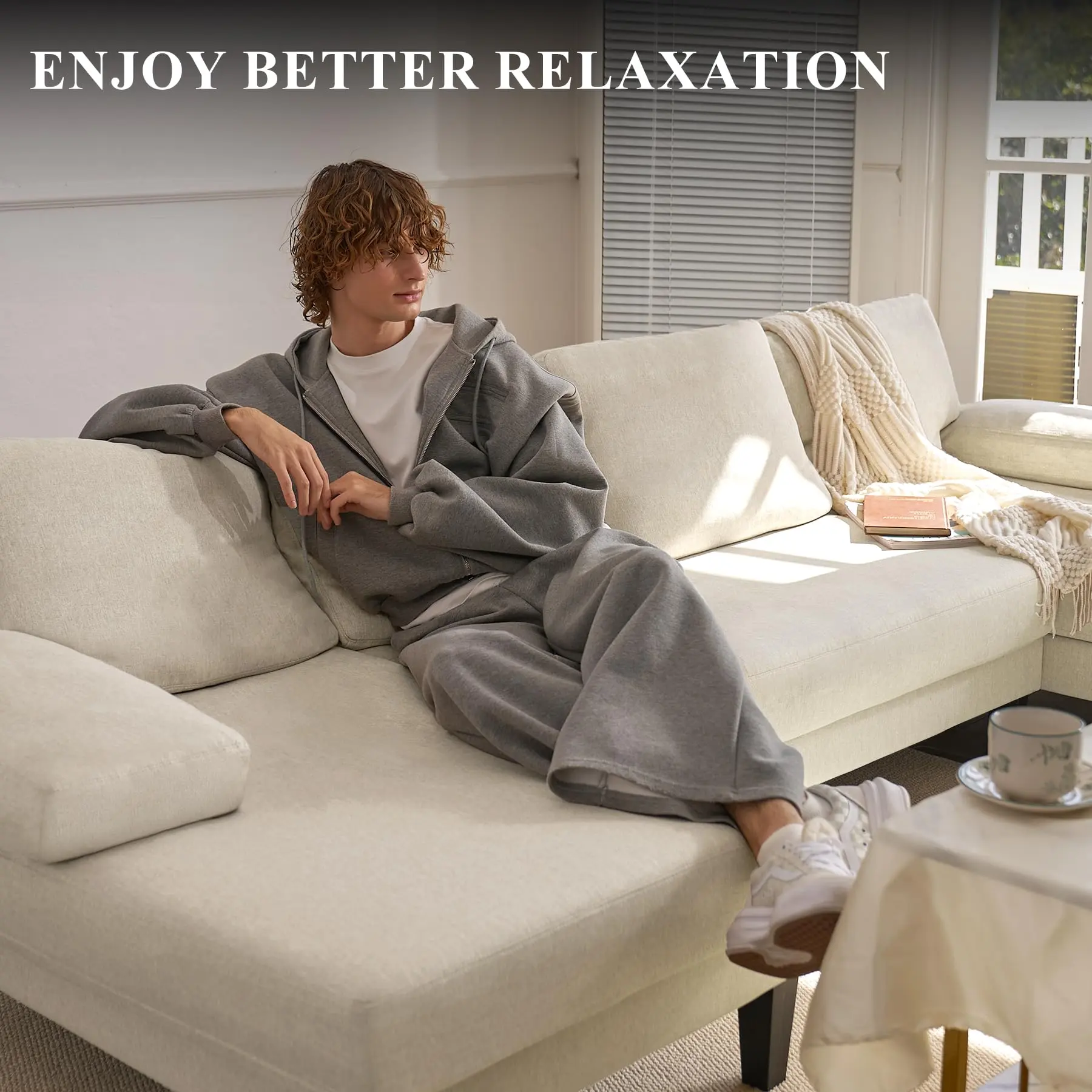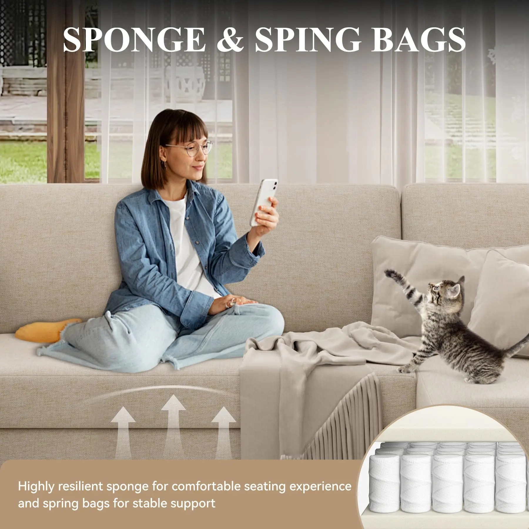 ·【COMFORTABLE MATERIAL】The classic modular couch made of linen fabric, which is breathable and comfortable. Cushion features a combination of spring packs and foam to provide comfortable sitting and effective support.