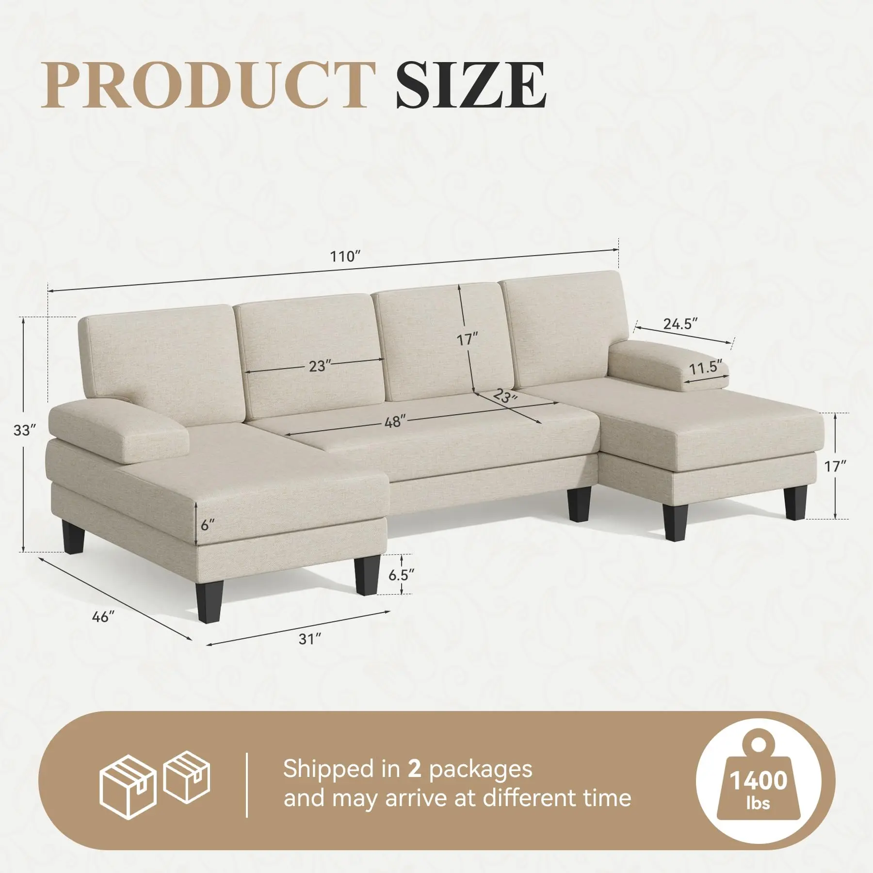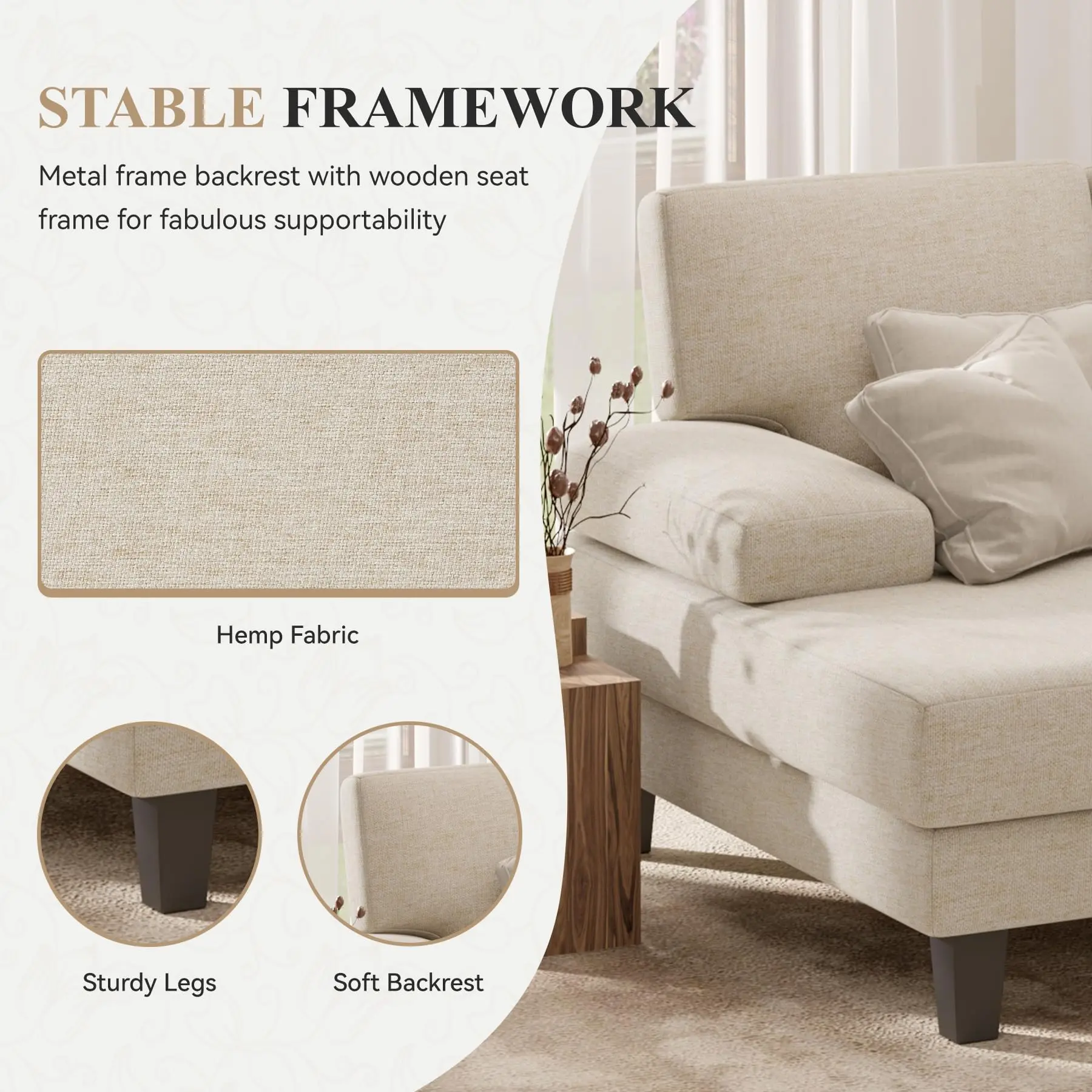 ·【TWO-BOX DELIVERY】The sofa will be delivered in two boxes and will require only simple assembly. The cushions are vacuum packed and will take at least 48 hours to regain the original shape and fullness after openingWe provide an installation manual and hardware for your convenience.