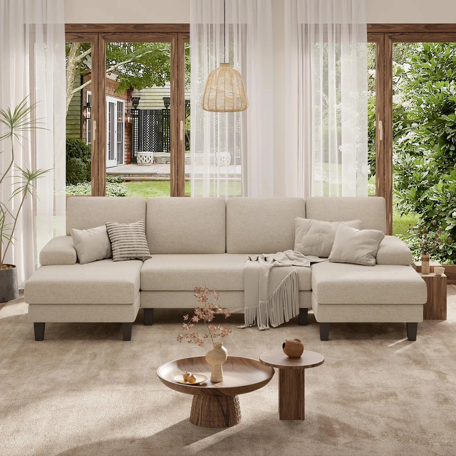U-Shaped Sectional Sofa Couch for Living Room, Modern Modular Sofa with Double Chaise, Classic Lounge Couch Sleeper for Apartment, Office Solid Wood Frame sectional couch