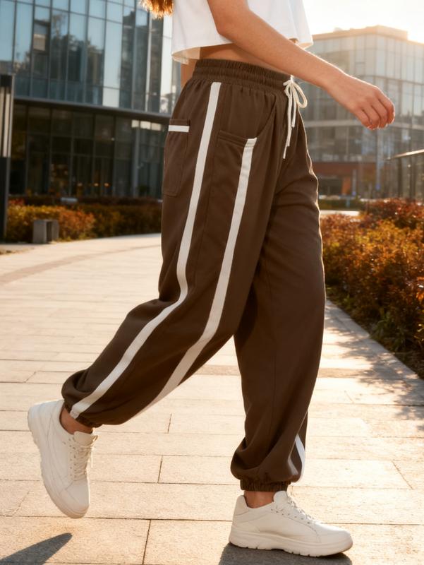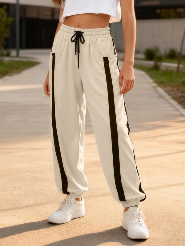 Features Y2K retro striped design with classic color schemes that exude a nostalgic vibe. The cuffed jogger fit is sleek and non-bulky, paired with unique pocket details to enhance retro charm and add stylish highlights. It seamlessly suits diverse scenarios like streetwear and daily wear, delivering high photo-worthy potential.