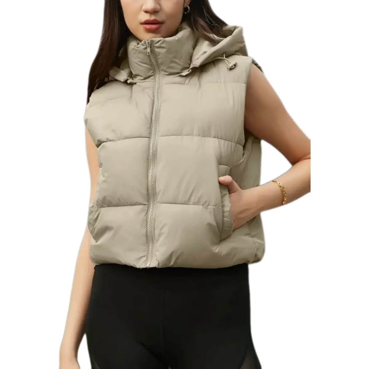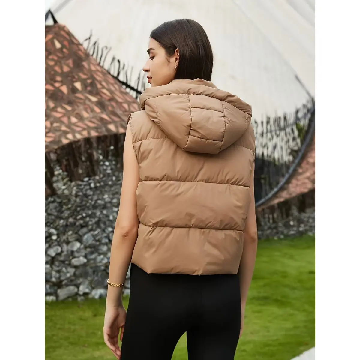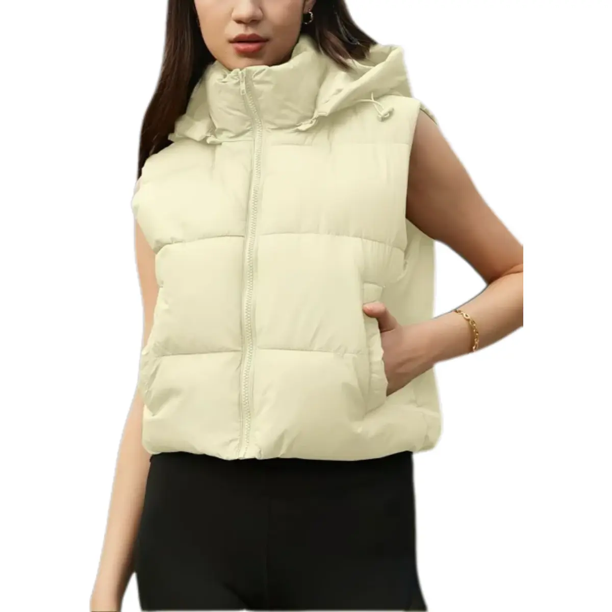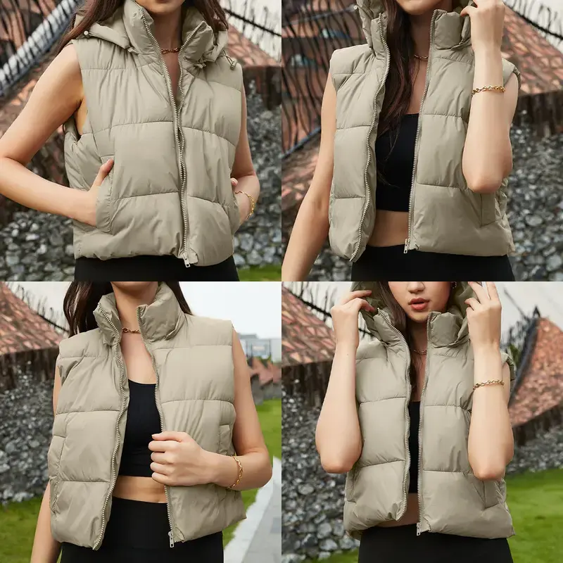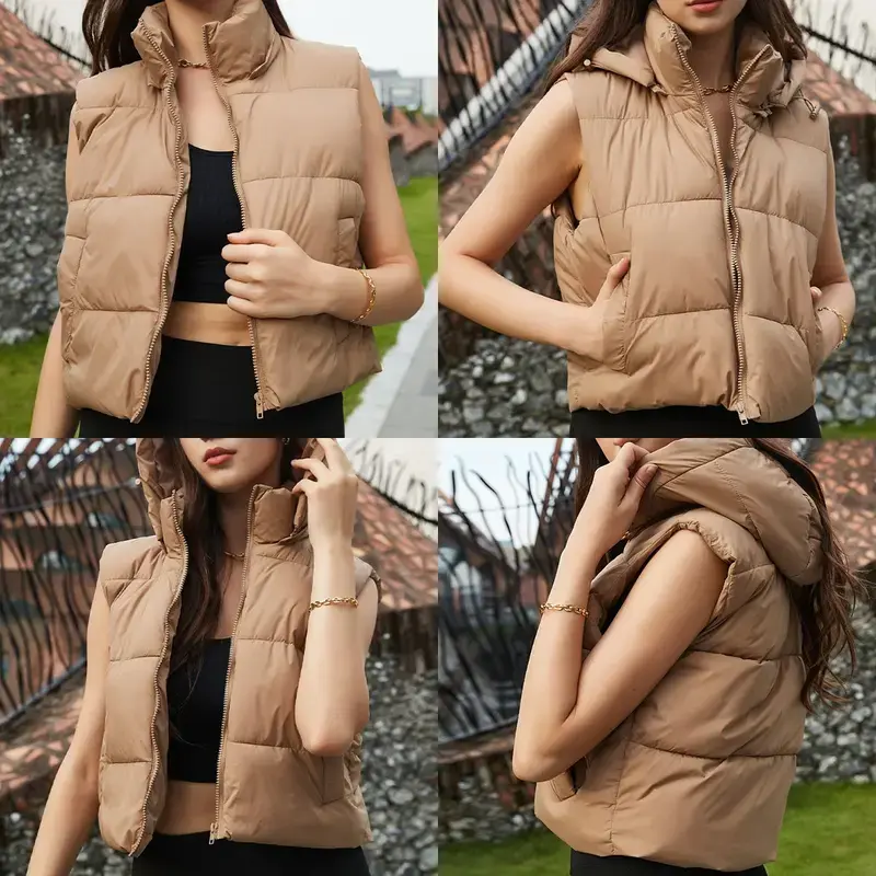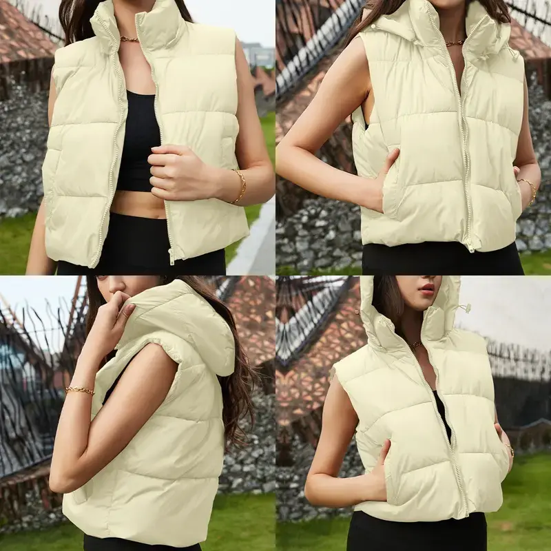 Elevate your cool-weather looks with the UANEO Women's Solid Color Hooded Puffer Vest. This standalone outerwear offers warmth, style, and versatility. The quilted puffy fabric locks in heat, making it ideal for autumn/winter days. The soft, wind-resistant shell feels gentle against your skin.