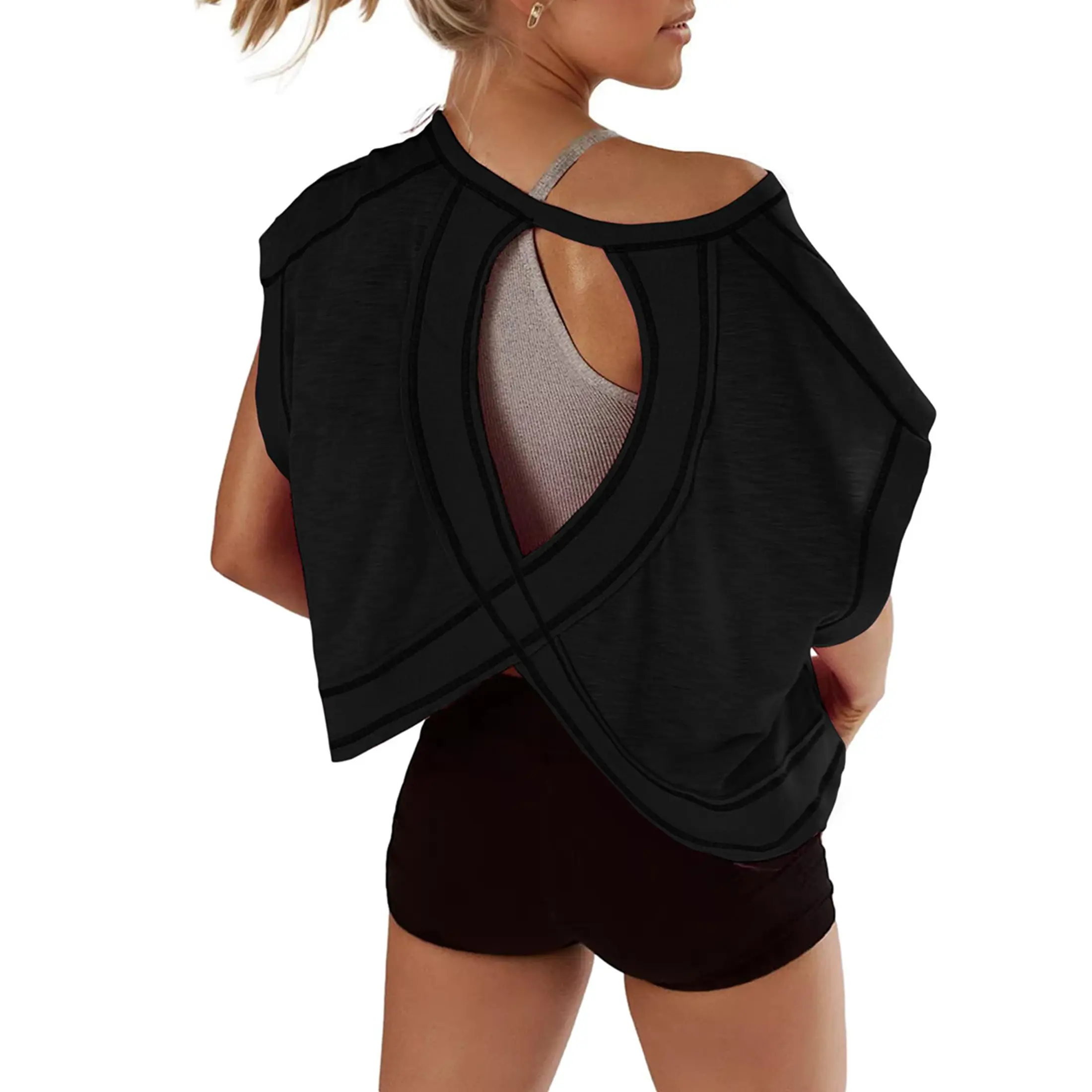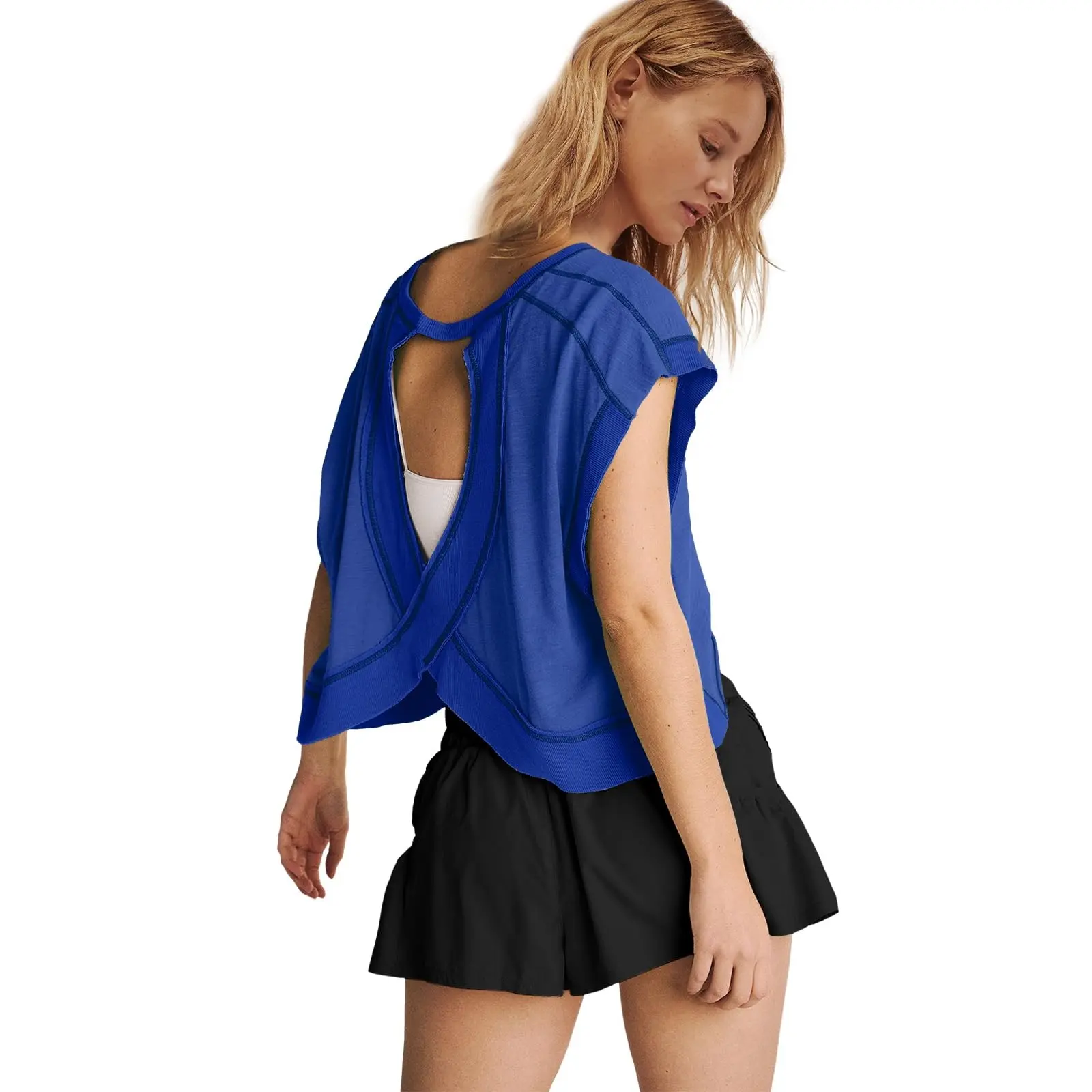 Features: Slight crop, shorter sides, wide neckline, open-cut back and ribbed wrist detail, the open back tops for women is fashionable and sexy, which increases the breathability, effectively dissipates body heat, and keeps cool and comfortable