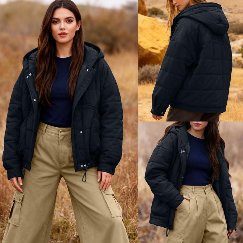 The jacket is equipped with a zipper closure design, which slides smoothly without jamming. It enables easy putting on and taking off while effectively blocking cold wind from entering. Additionally, it is thoughtfully designed with pockets, which can be used to hold small items such as mobile phones and keys. It combines practicality and convenience, making it very suitable for daily commuting and shopping.