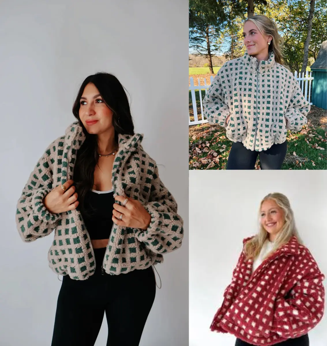 ·Cute sherpa fleece jacket for women, high-quality faux fur fabric, super soft, skin-friendly and comfortable to wear, warm-keeping in fall and winter, plaid zip up fleece jacket