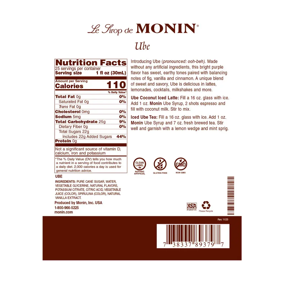 Introducing the Monin 2024 Flavor of the Year: Ube! This vibrant purple yam from the Philippines is a sweet and earthy flavor that is sure to captivate your taste buds. With notes of fig, vanilla, and cinnamon, Ube Syrup is the perfect addition to any beverage or dessert. Transform your lattes, lemonades, cocktails, milkshakes, and more with this unique and delicious flavor.
